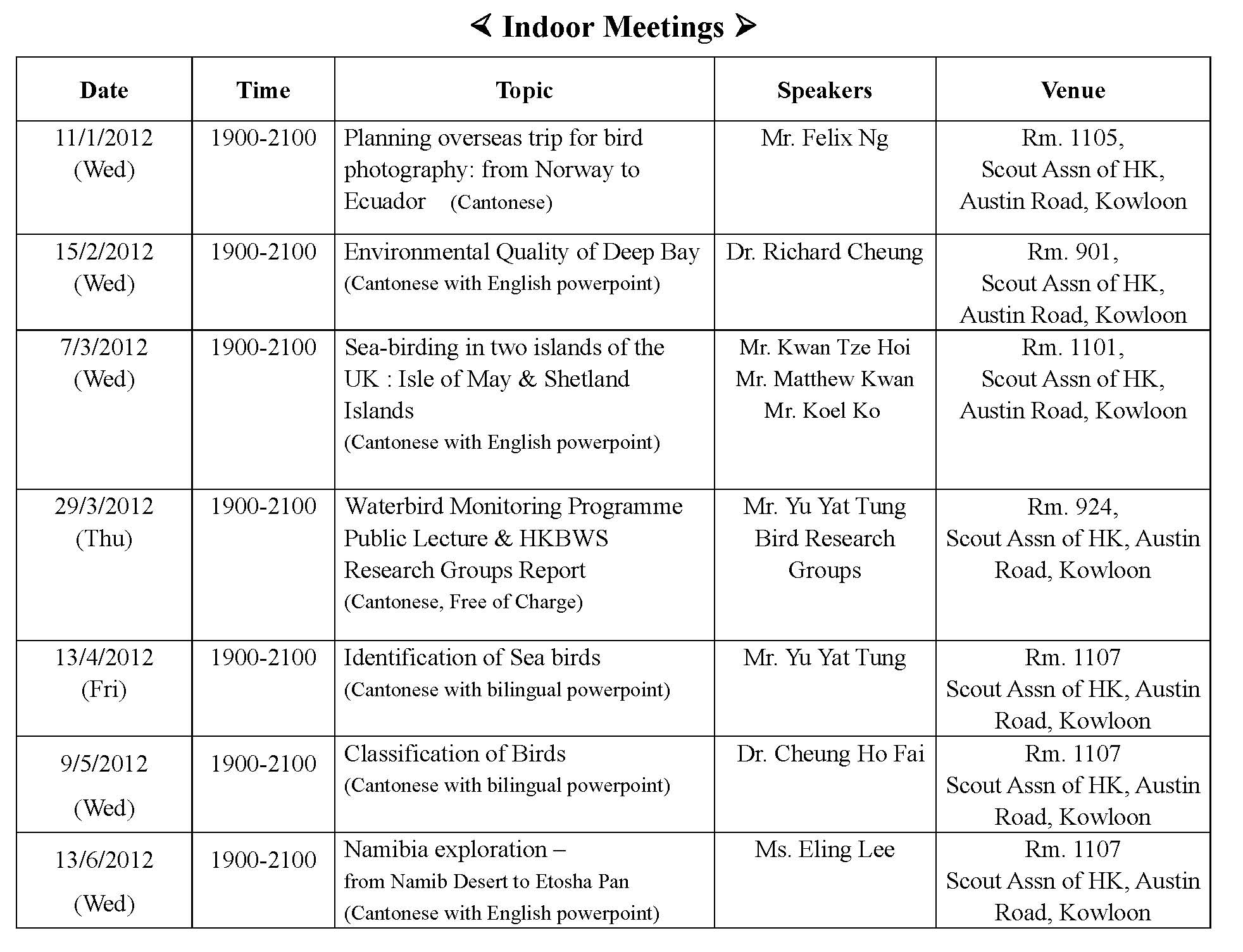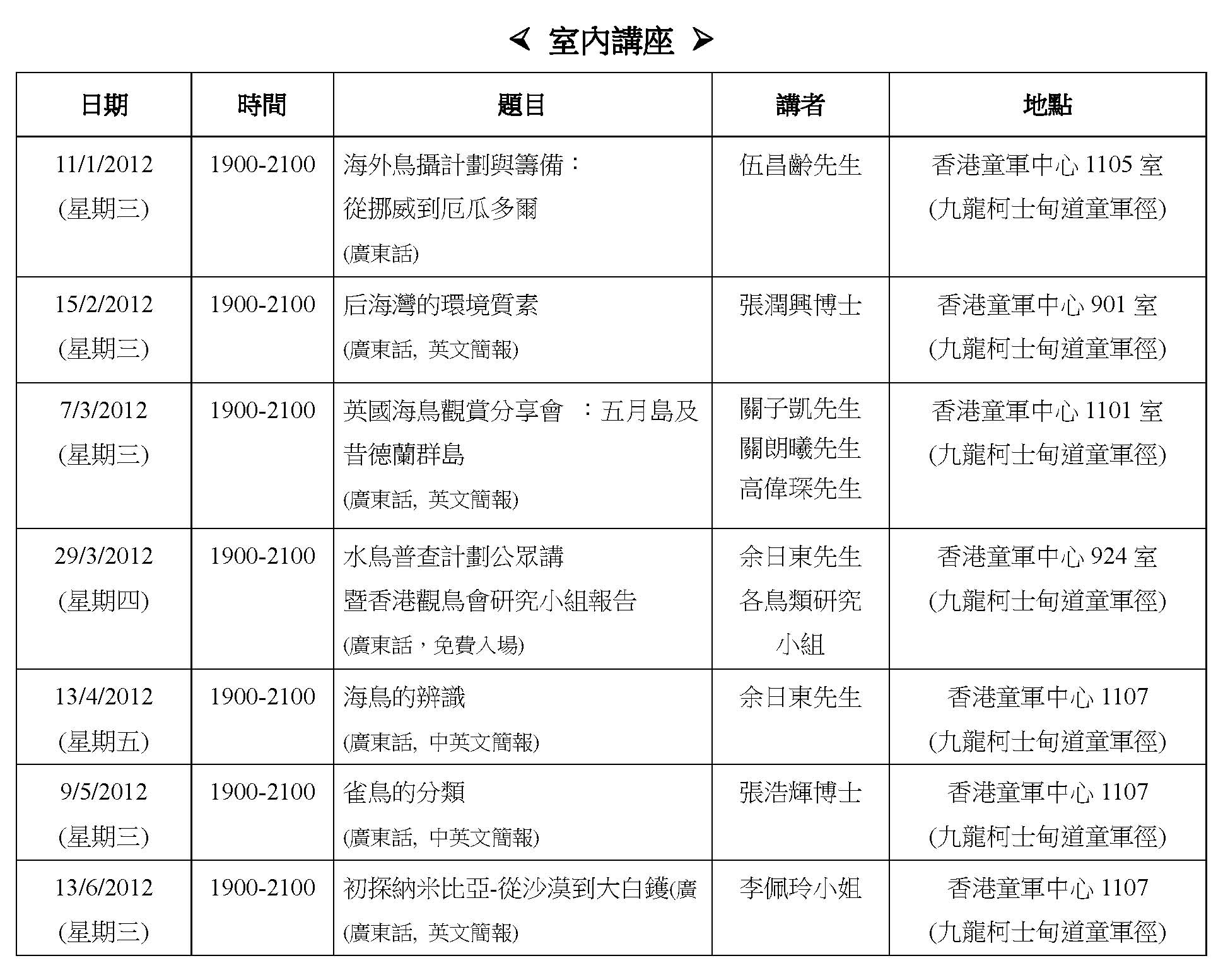 室內講座IndoorMeeting-2012年1月至6月Jan to Jun 2012