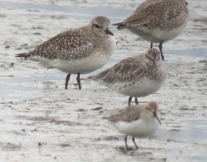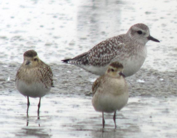 留意灰斑鴴、大濱鷸和黑腹濱鷸的大細比例。