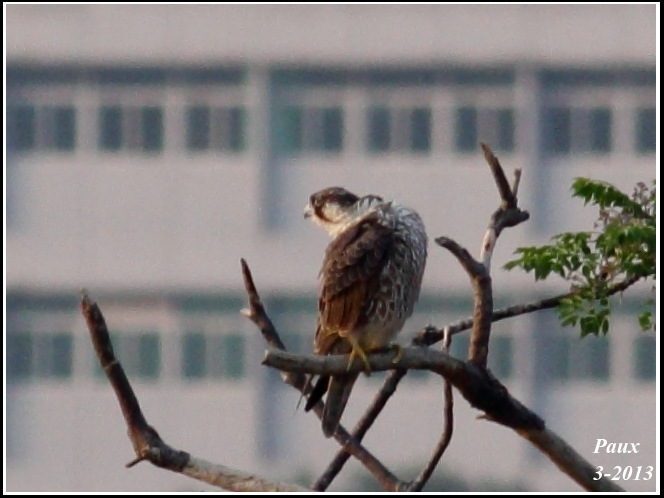 Before perching on the tree, this young killer was chased by a Collared Crow!