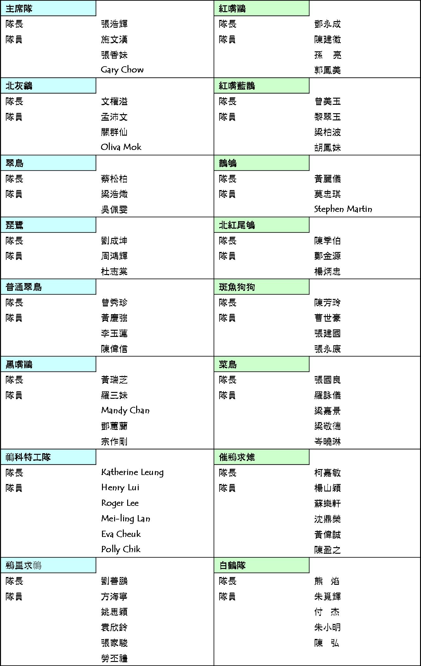» 香港觀鳥大賽2010參賽名單 HK Bird Race 2010 List of Teams [24/3更新]