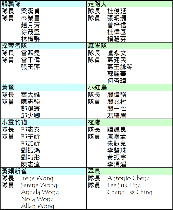 方尾鶲隊隊長姓氏打錯了, 請更正, 在 30/Mar 名單內顯示是正常的.