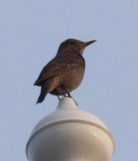 It looks like a thrush to me, but I can't find any that matches it. It stood on top of a pole at the top of building far away, so difficult to see the back or judge the size. Thanks.