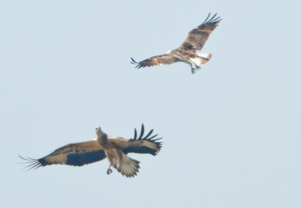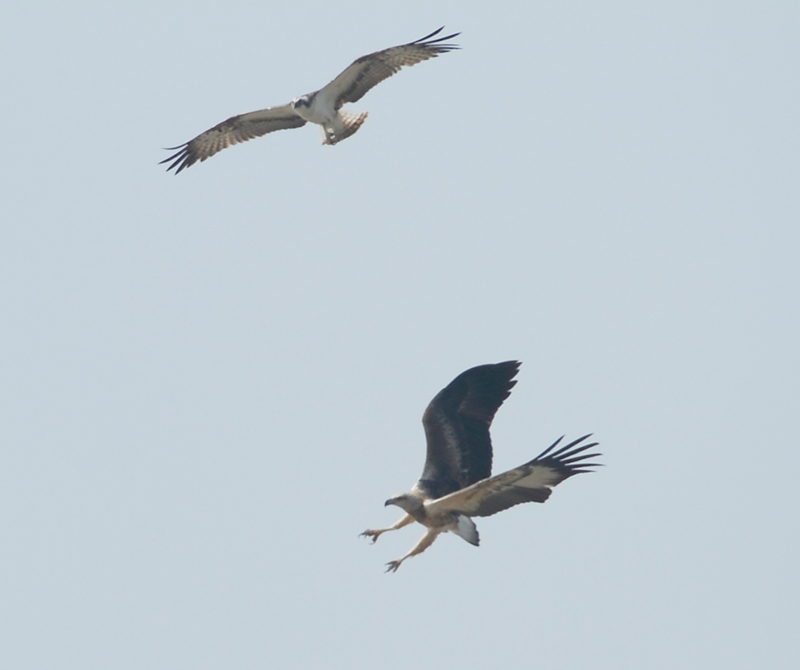 At MP: sorry for low image quality, as these shots were taken from a very long distance, i was taking shots of a Osprey and suddenly saw up high in the sky this WBSE was chased by another osprey: