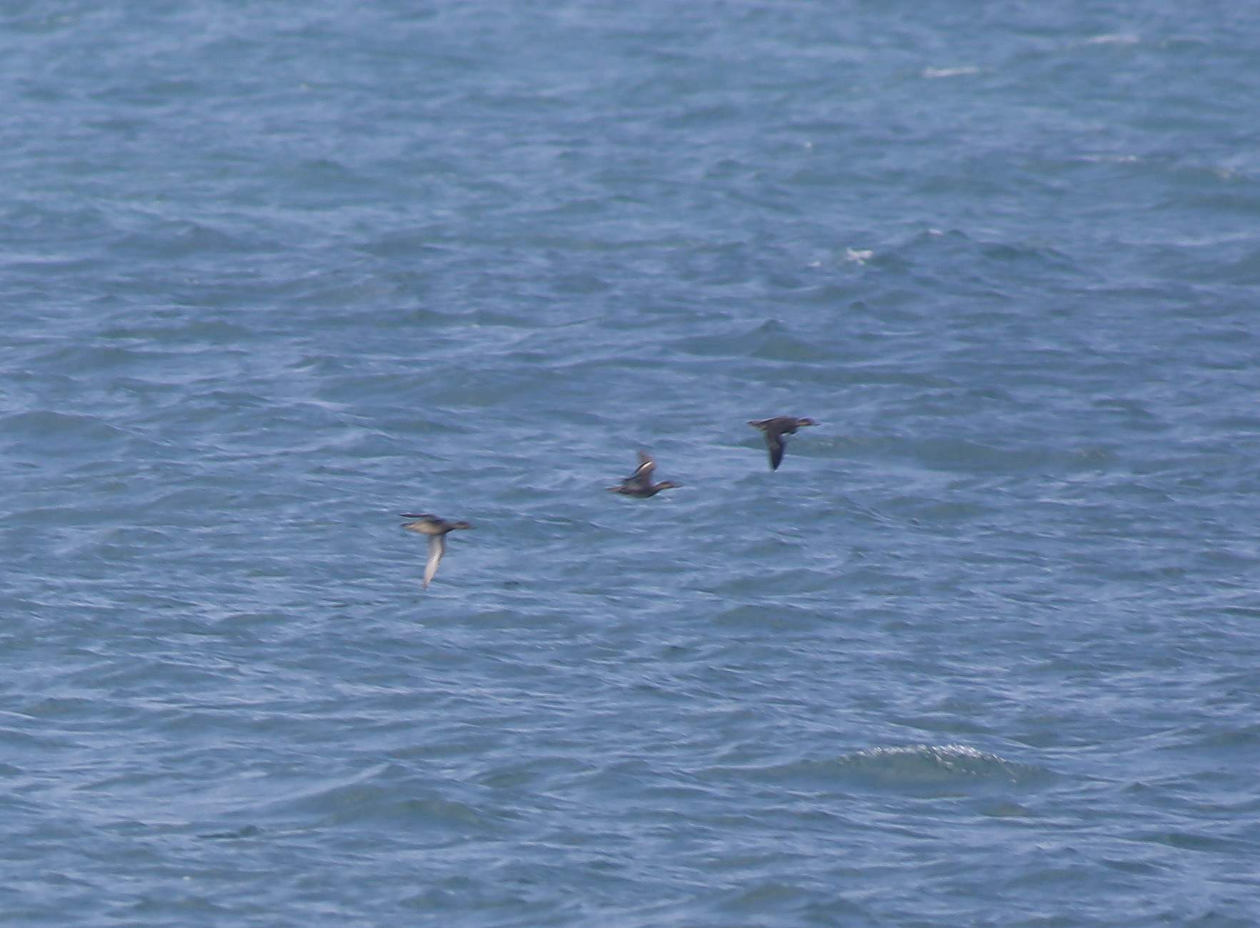 The raptor is a Peregrine falcon and the others are Eurasian Teal