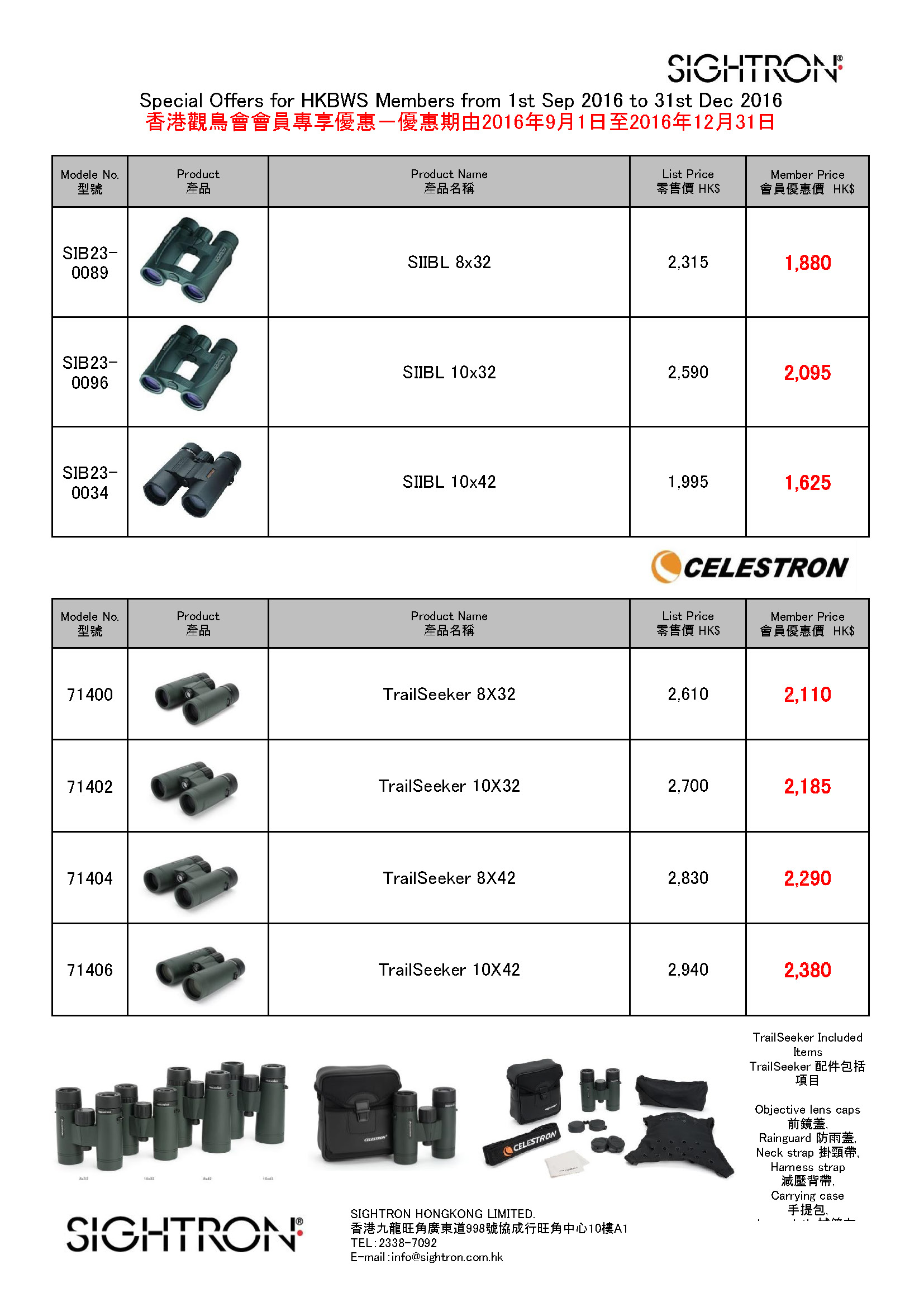 Special Offer of SIGHTRON / CELESTRON Binoculars ~ Sep to Dec 2016