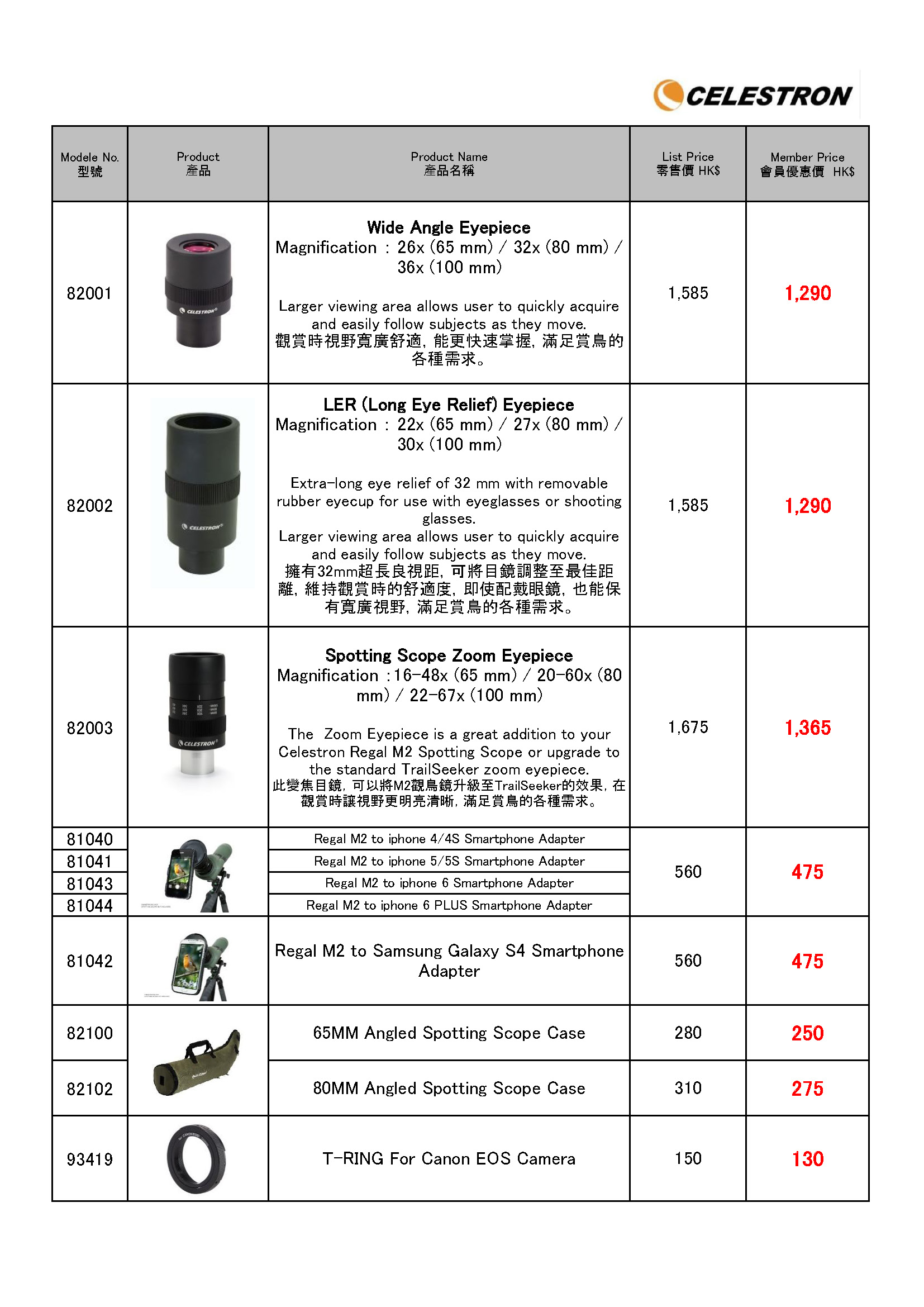 本會辦事處有以下型號樣品供試用: The following demo units are available for trail in our office: SIGHTRON - SIIBL 8x32 - SIIBL 10x32 - SIIBL 10x42 CELESTRON - TRAILSEEKER 8x42 - NATURE DX 8x25 - REGAL M2 65ED SPOTTING SCOPE - LANDSCOUT 50MM SPOTTING SCOPE - LANDSCOUT 60MM SPOTTING SCOPE