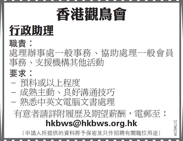 » 香港觀鳥會招聘行政助理
