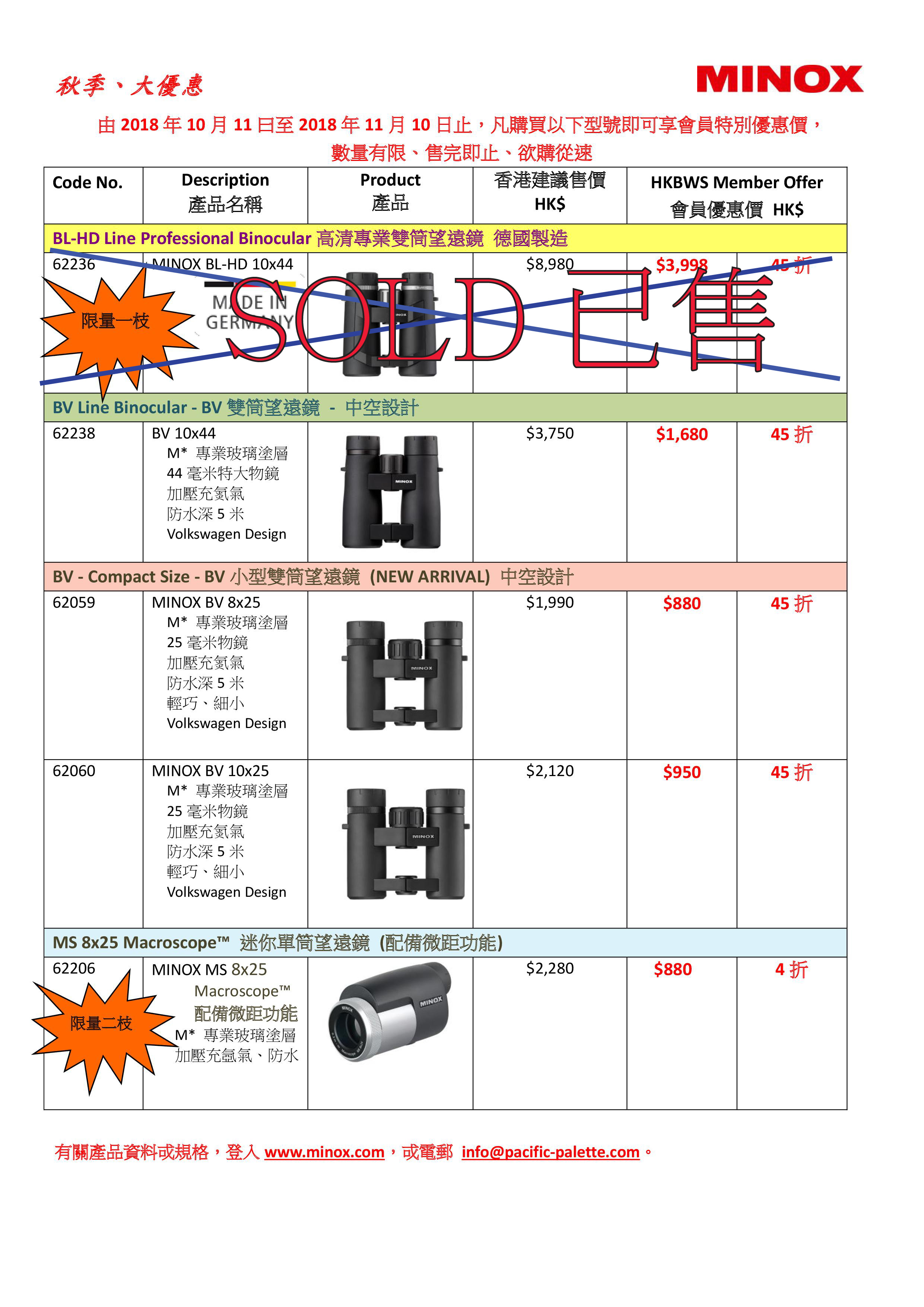 MINOX望遠鏡<秋季大優惠> ~ 2018年10月11日至11月11日