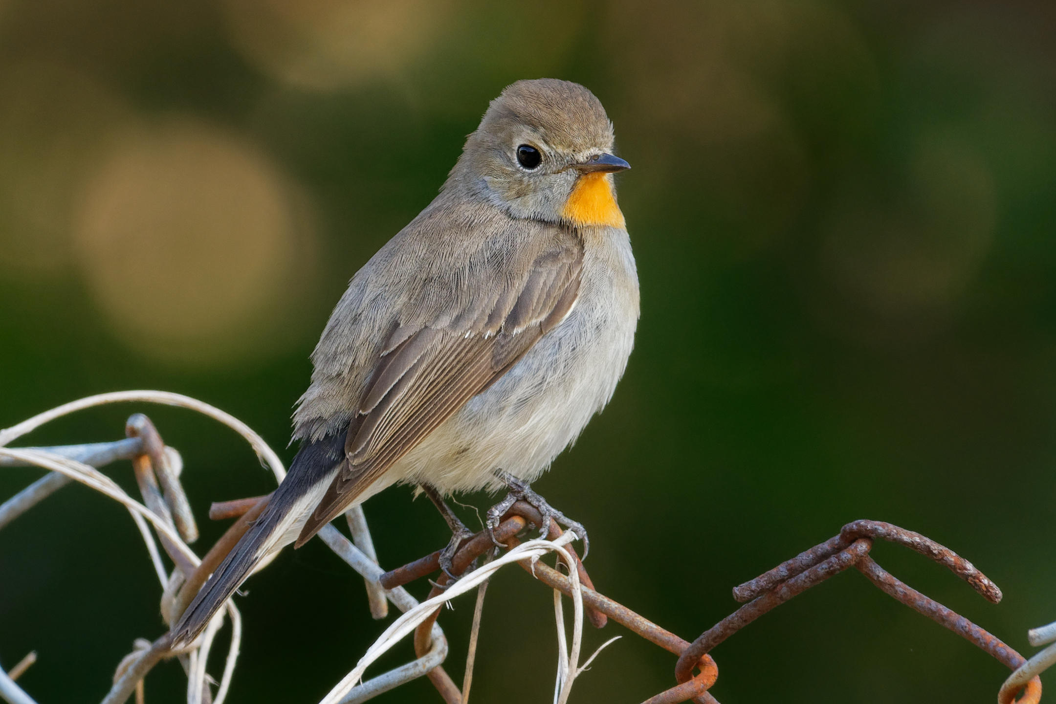 Red-throated Flycatcher on wire fence 紅喉姬鶲
