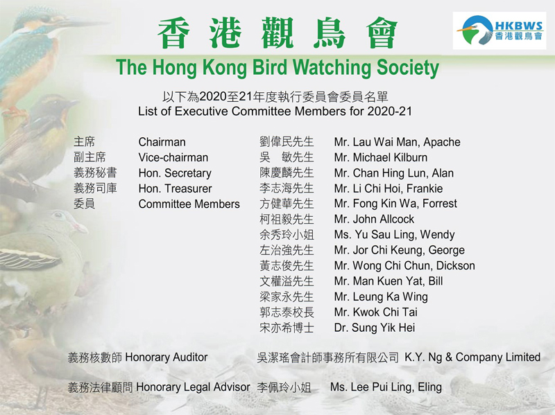 » 香港觀鳥會2020-21執行委員會 HKBWS Exco Member for 2020-21