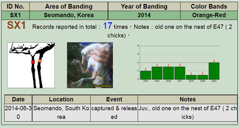 It seems to be SX1, with red band on right leg and orange band on left leg.