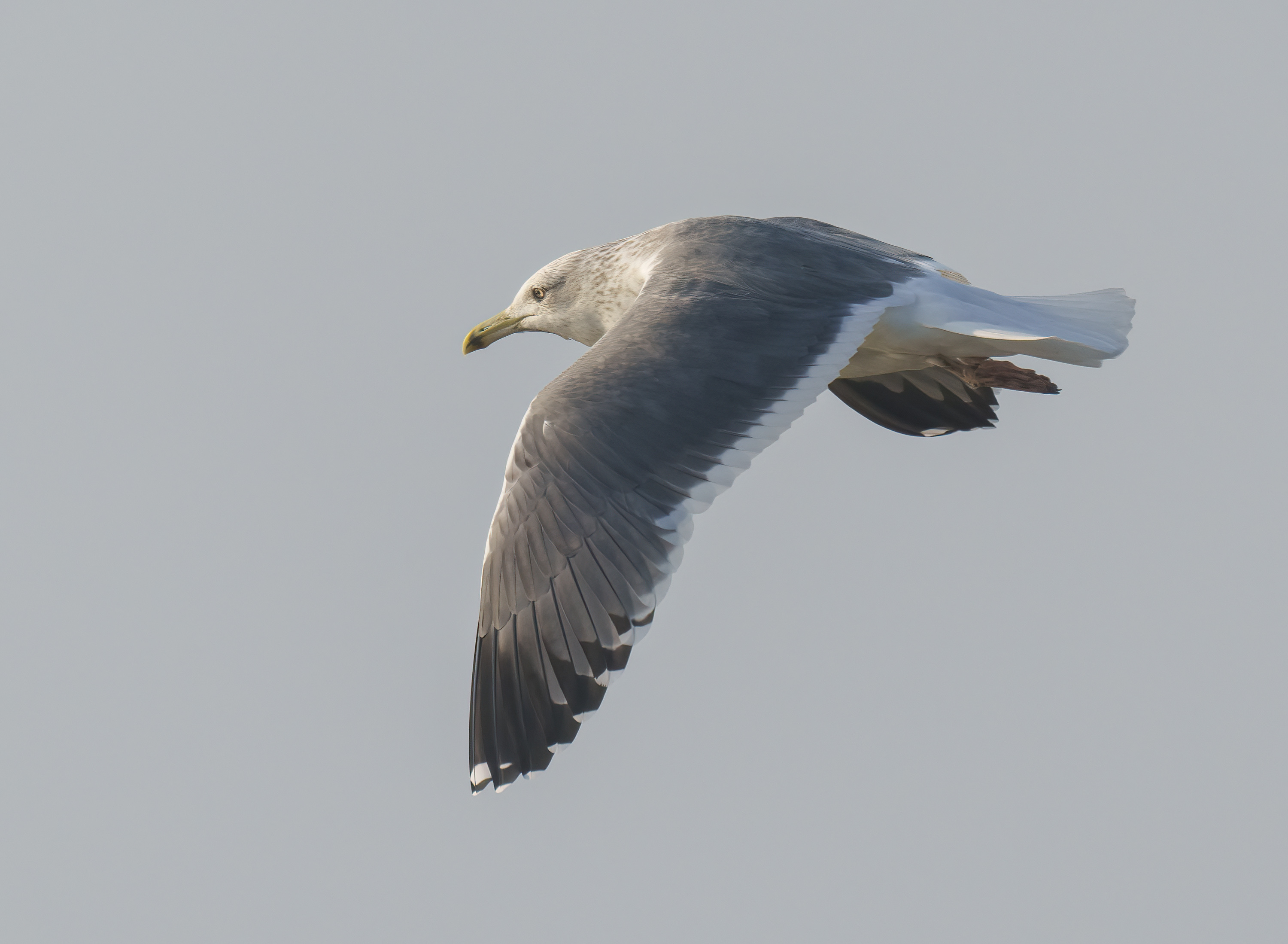 I photoed two gulls in Deep Bay on Shen Zhen side this morning, 23 January 2023. The first one had a dark grey back (the first 3 photos) while the second one (the last 2 photos) had grey back. Their size were similar.