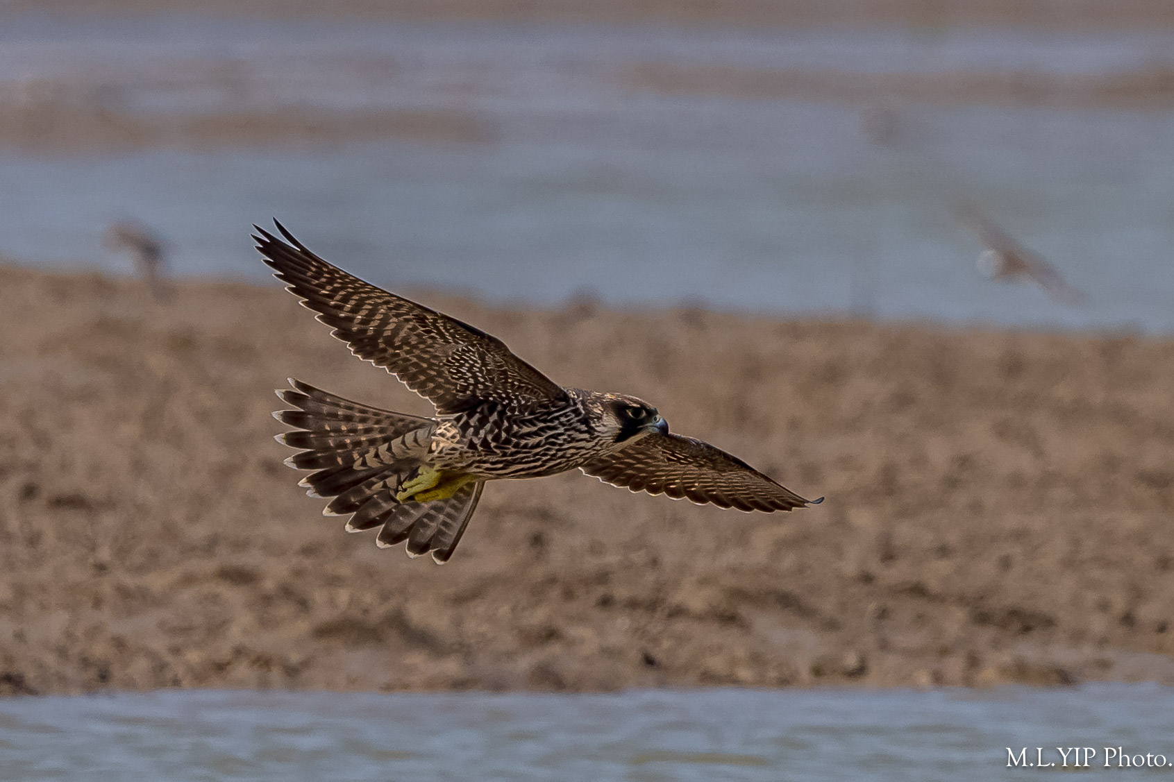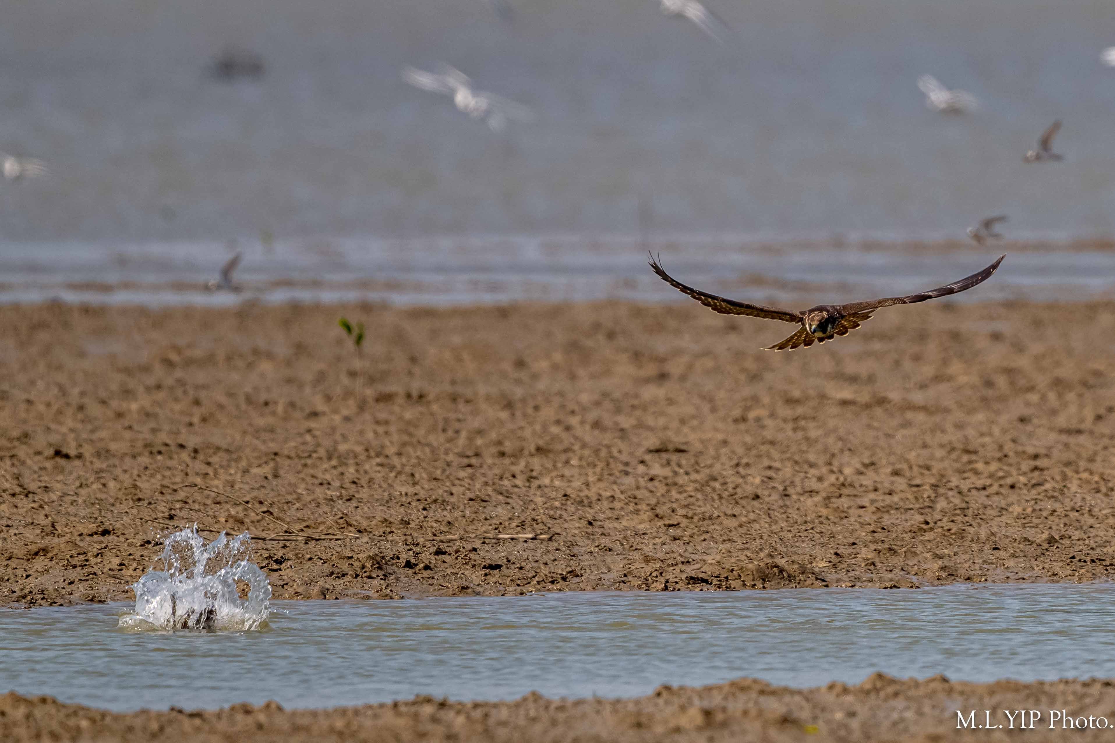 遊隼突襲,可惜目標物插水而遁,遊隼惟有悻悻然離開.