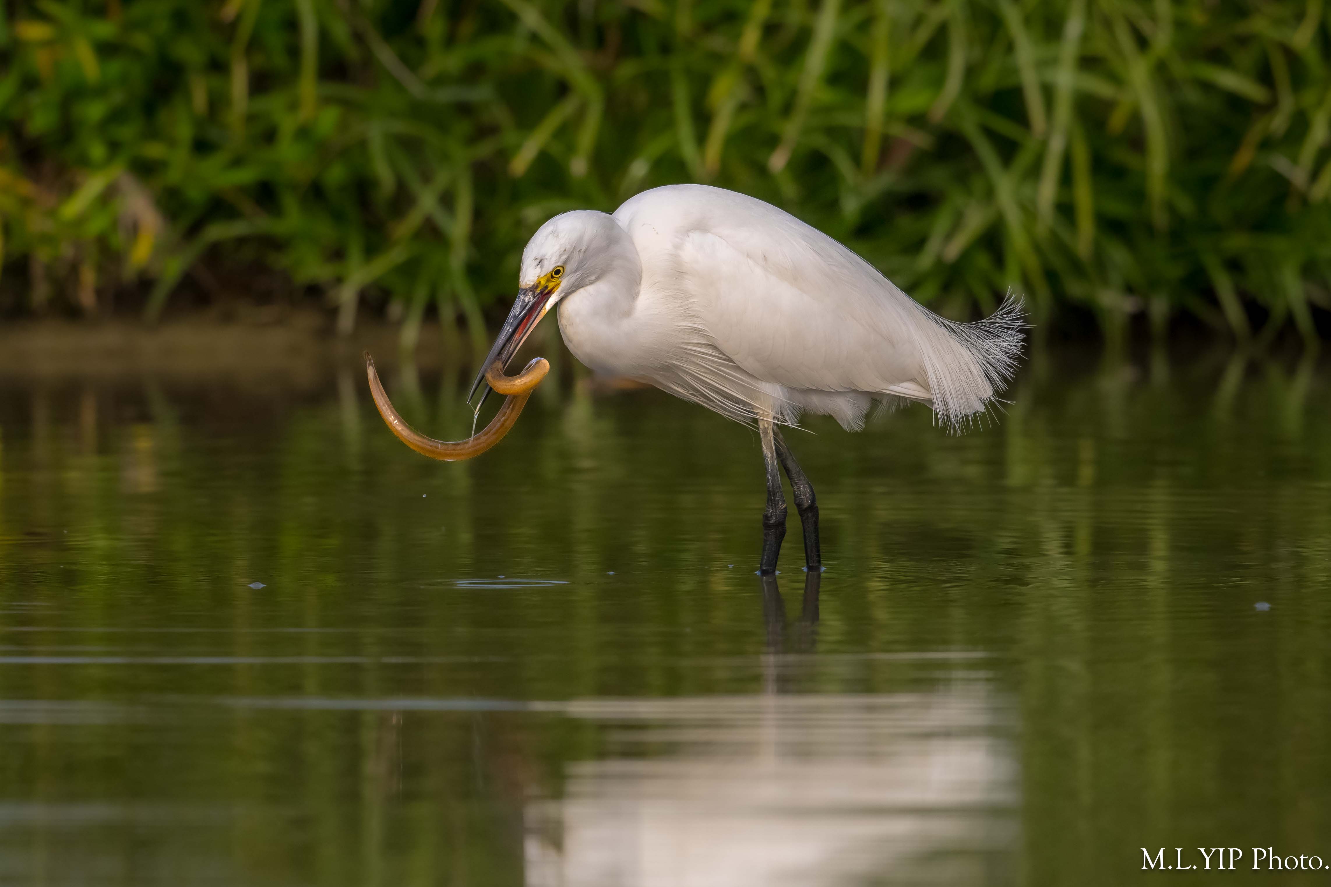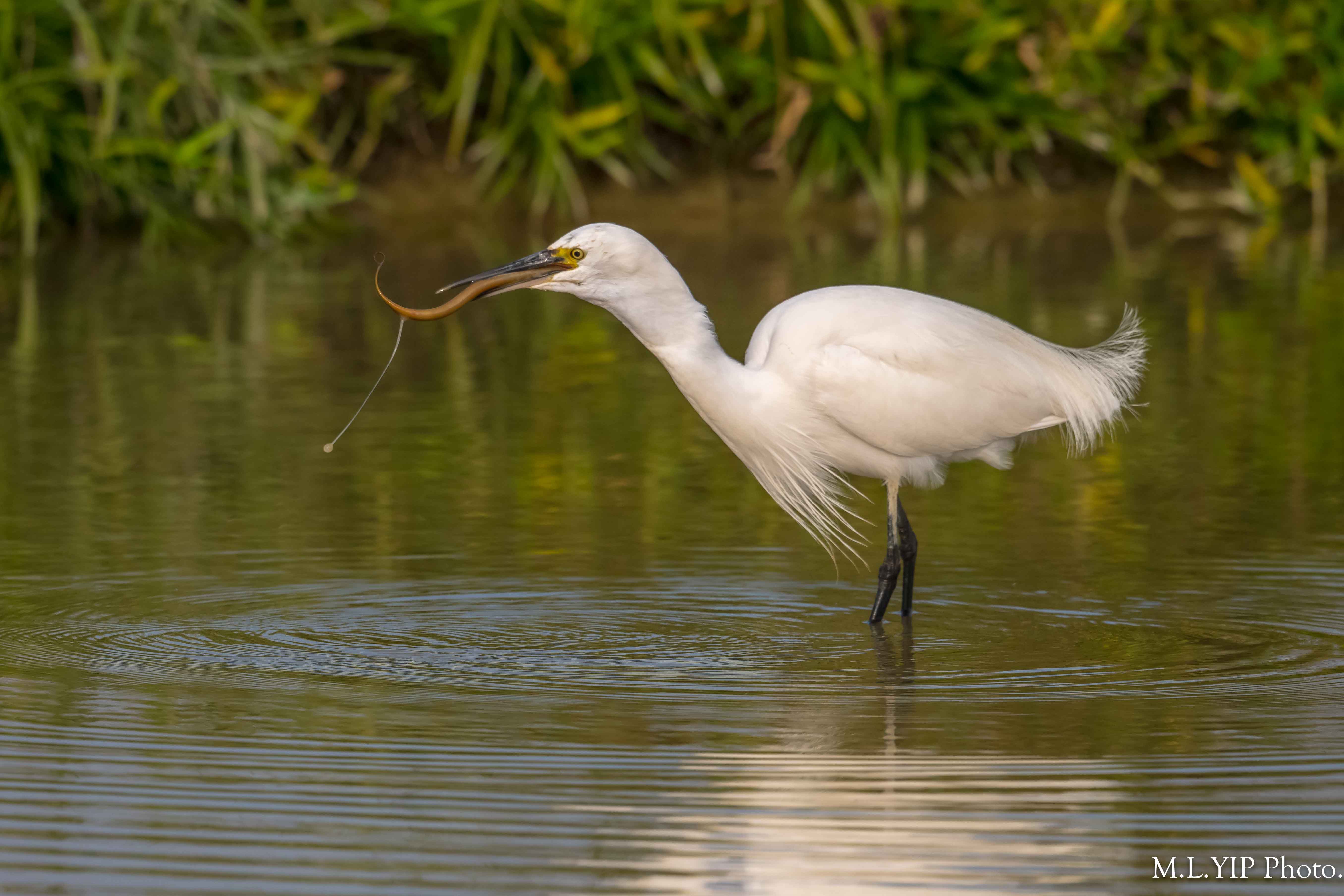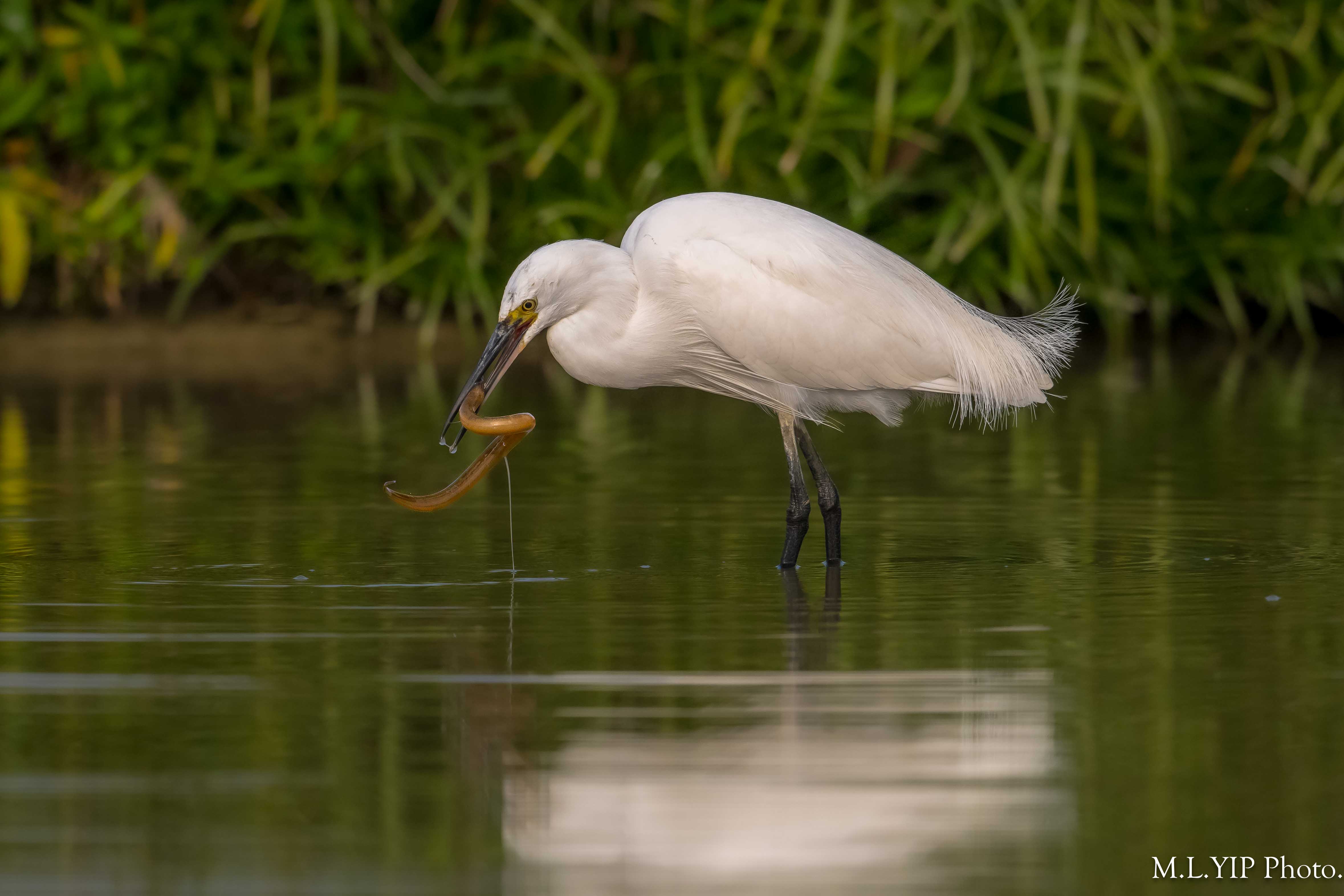白鷺吞黃鱔.