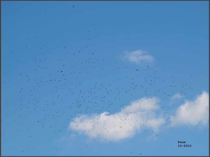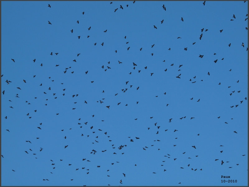 While I waited for the raptors, a mixed flock of Daurian Jackdaw(達烏里寒鴉)& Carrion Crow(小嘴烏鴉)quietly flew over my head & headed south.