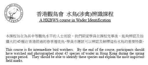 » 香港觀鳥會水鳥(涉禽)辨識課程 A HKBWS course in Wader Identification