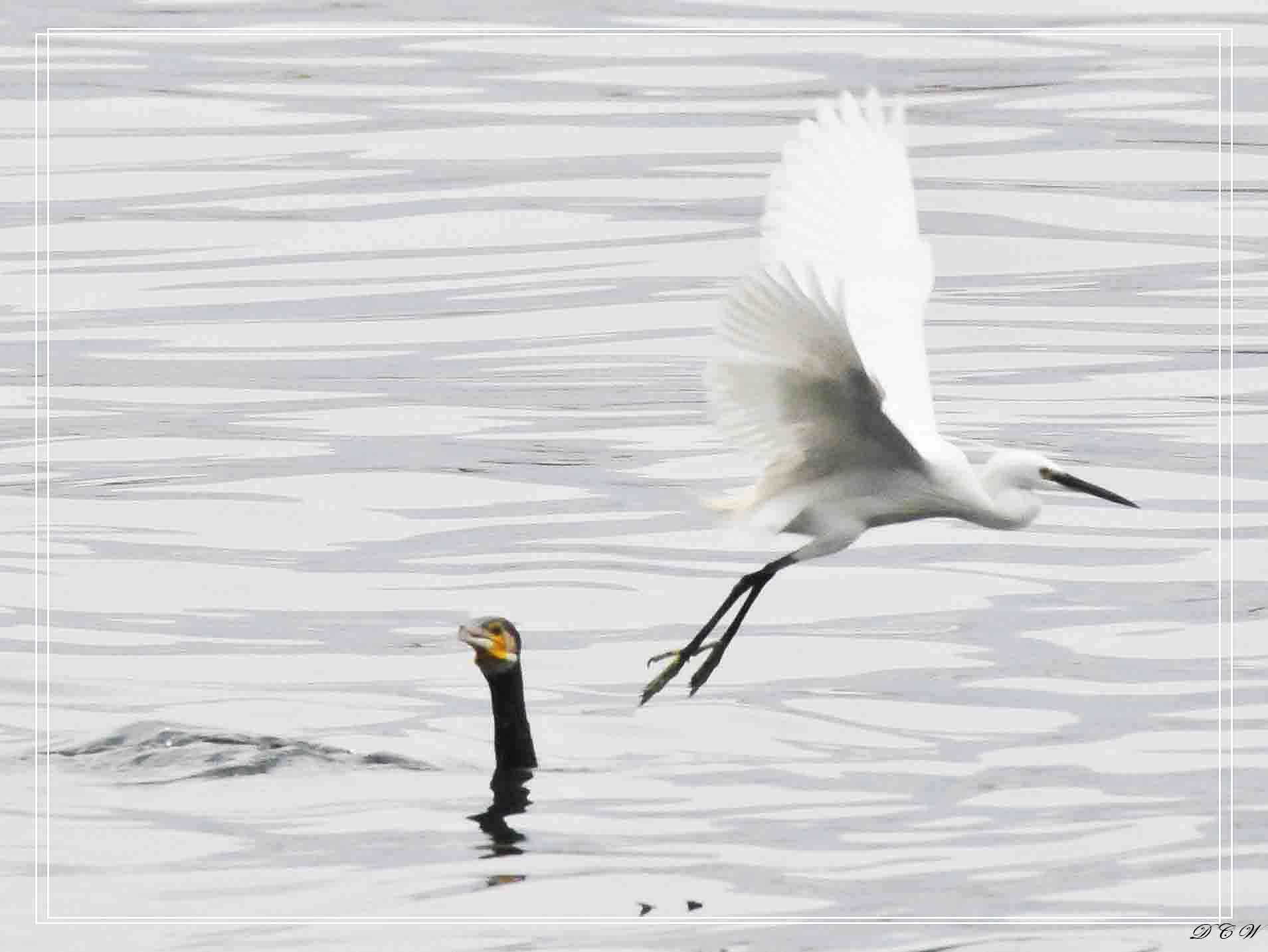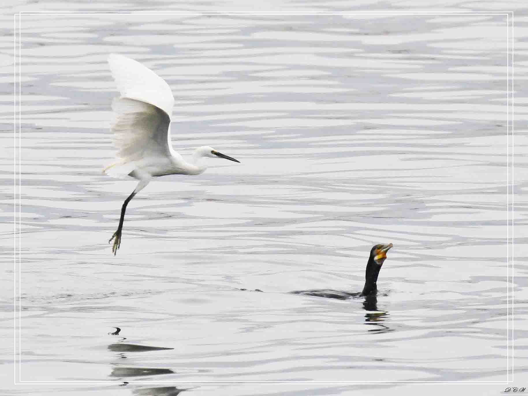 小白鷺欲搶普通鸕鷀捉到的魚...可惜這次沒有捉到魚...