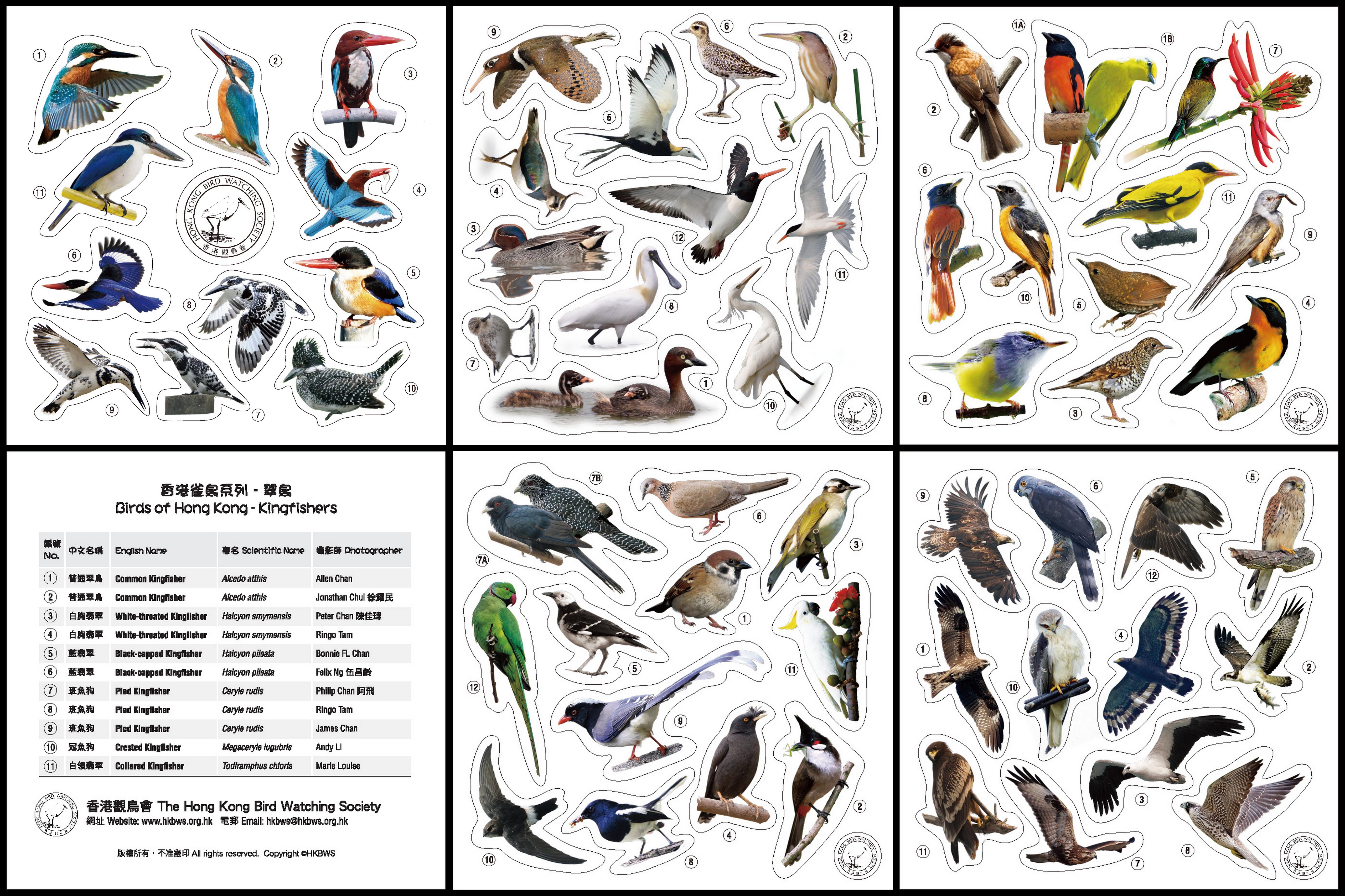 A new set of <Birds of HK Stickers> is now available for sale in our new office at Lai Chi Kok. The sticker set includes 5 bird series, ie kingfishers, raptors, waterbirds, woodland birds & urban birds.