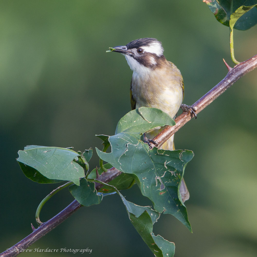 Light-vented Bulbul - eating leaves