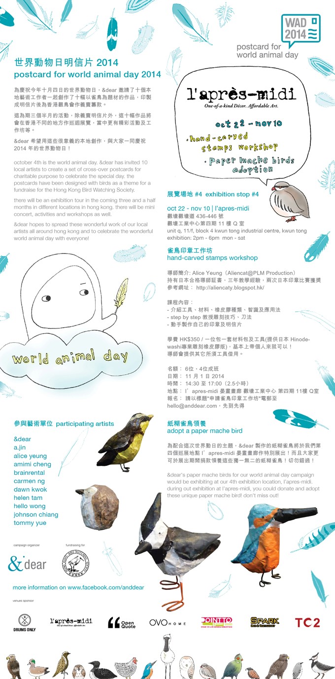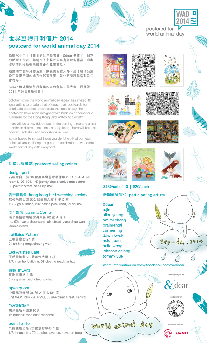October 4th is the World Animal Day, &dear has invited 10 local artists to create a set of cross-over postcards for charitable purpose to celebrate the special day. The postcards have been designed with birds as a theme to raise fund for the Hong Kong Bird Watching Society.