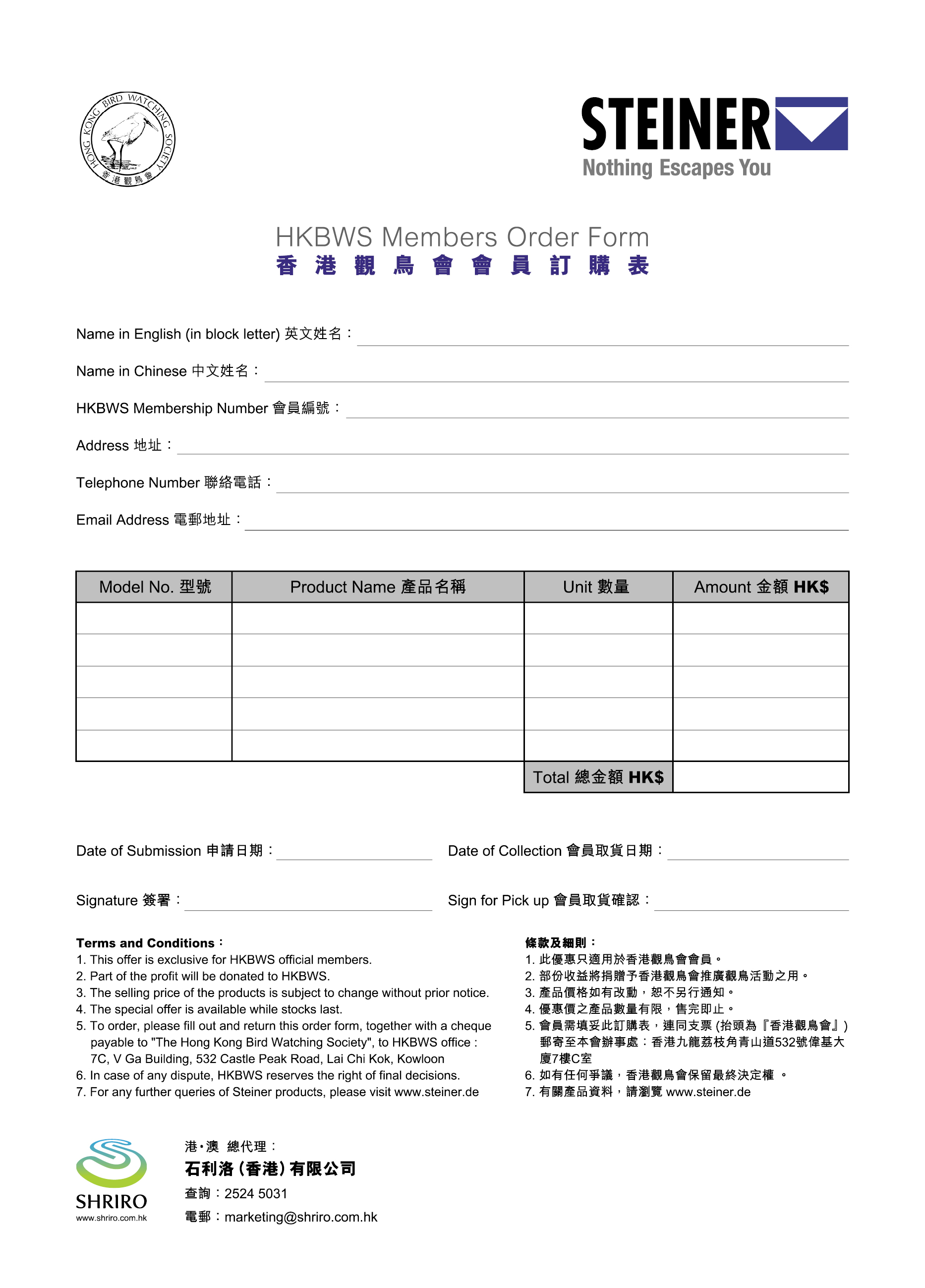 訂購表格 Order form: OrderForm_Steiner_201501-06.pdf (783.45 KB) OrderForm_Steiner_201501-06.pdf (783.45 KB) Downloaded count: 1182 5/01/2015 10:30