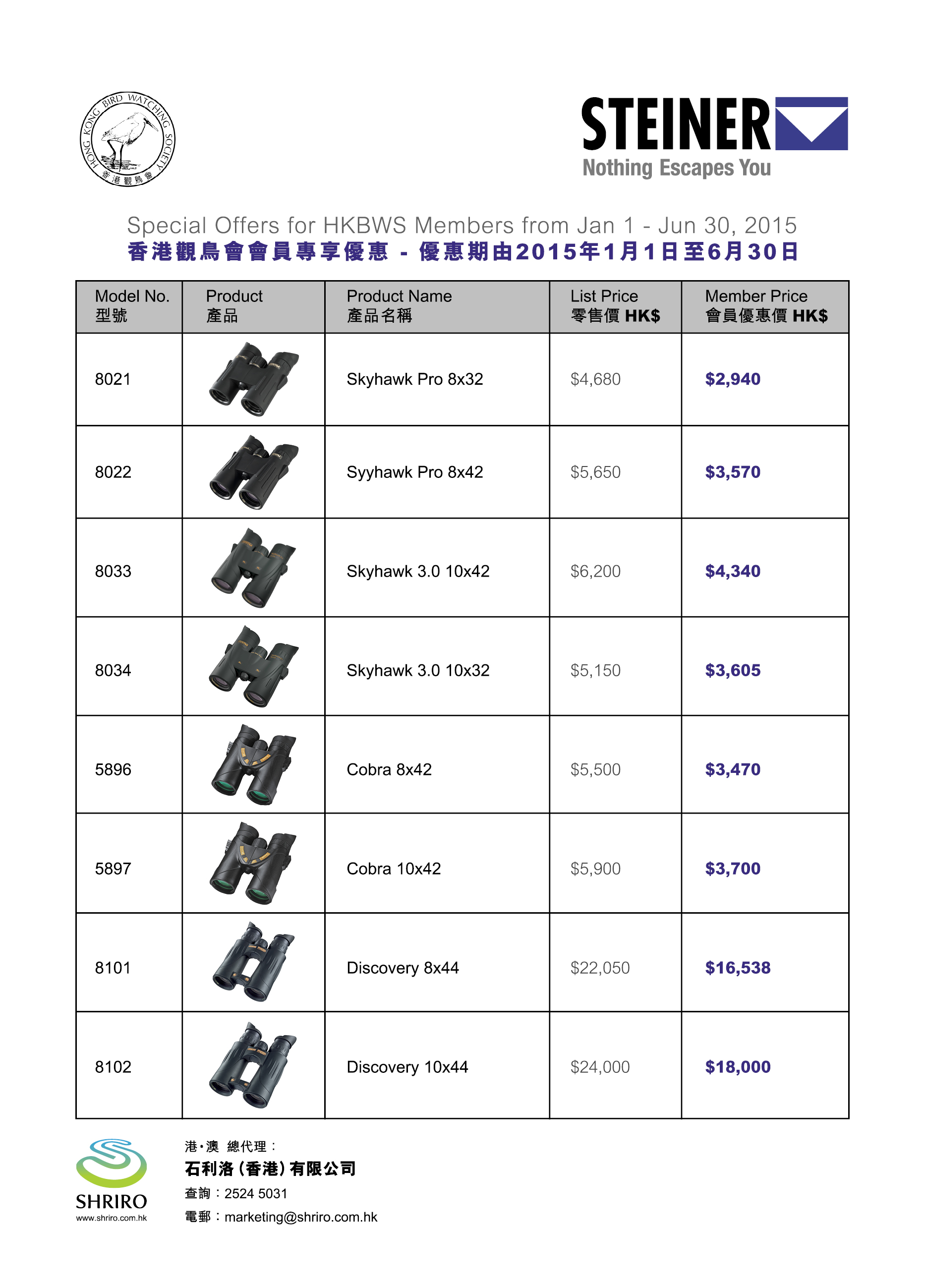 Special Offer of Steiner Binoculars 2015/01-2015/06