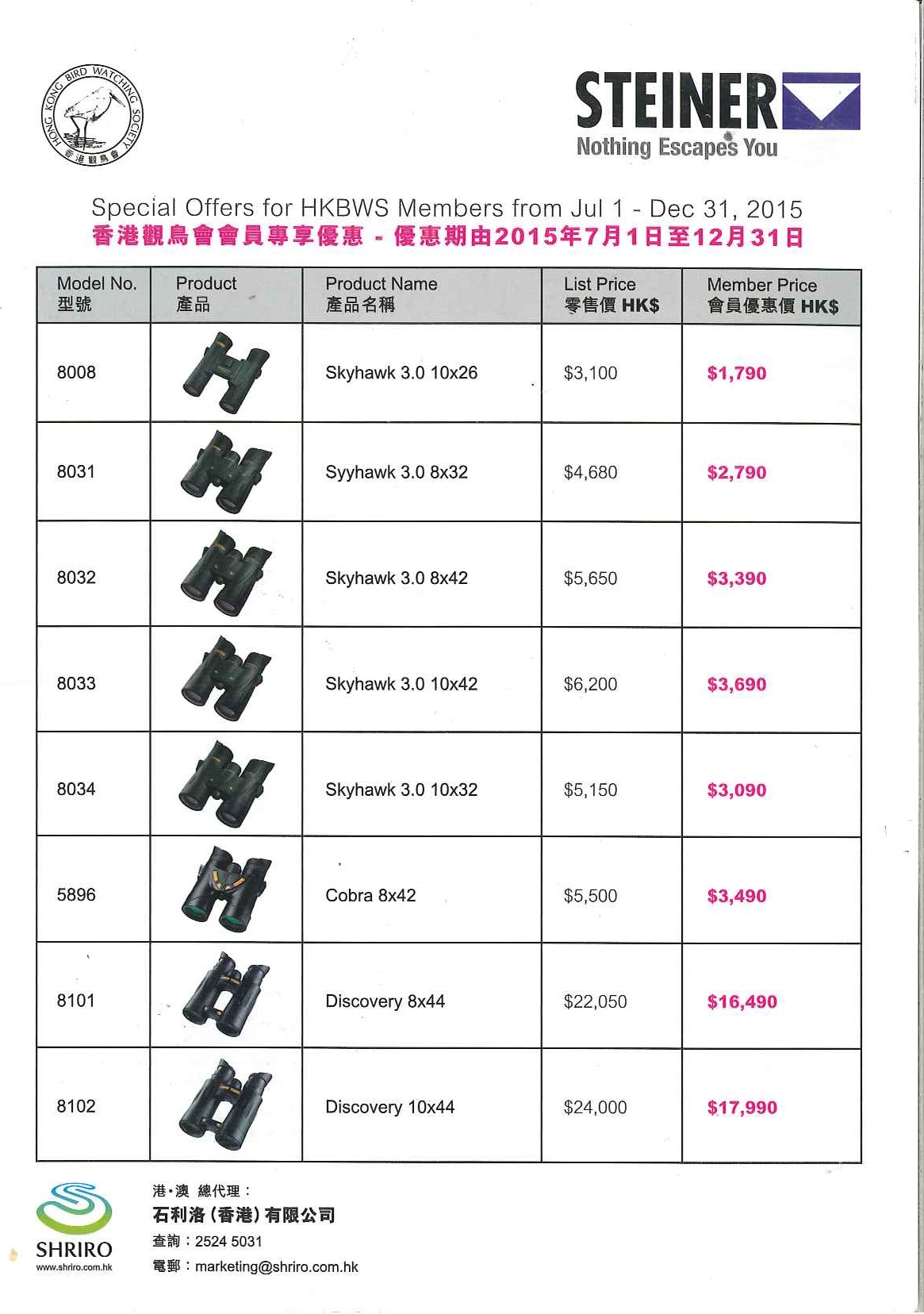 Special Offer of Steiner Binoculars 2015/07-2015/12
