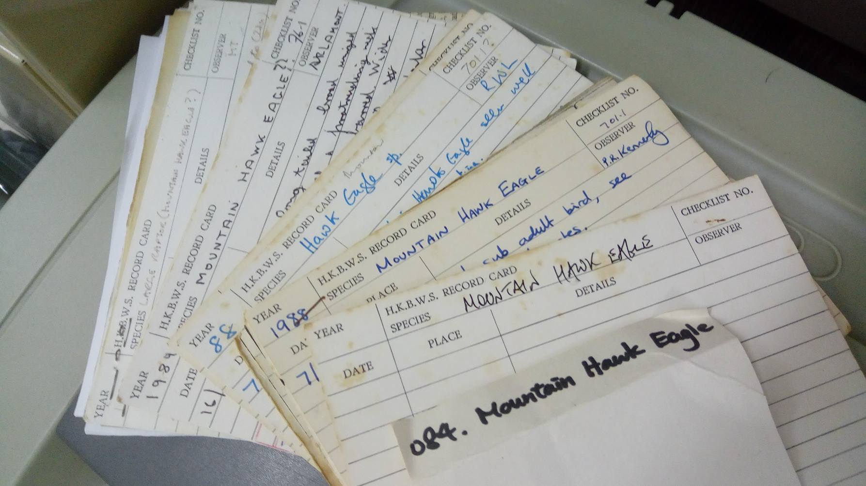 香港觀鳥會自1957年創會以來,感謝前輩會員的努力,數十年來儲下不少的雀鳥記錄,成為本會最重要的資產之一。早年的記錄以雀鳥記錄卡的形式儲存,由於卡紙日久開始發黃損毀,為免大量記錄因而遺失,現希望把所有記錄卡掃描備份,誠徵義工數名幫忙完成此歷任務,詳情如下: