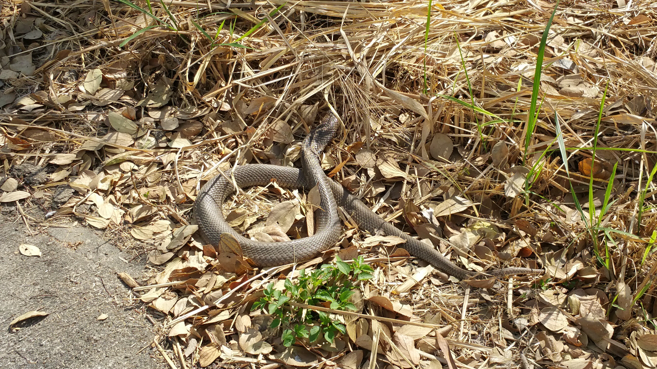 Snakes usually avoid close contact with human, I see snakes often in MP and usually they will just slither away when you get too close. Most snakes can detect human simply by the vibration our foot step caused while we walk, so very often they will be gone before we know it, even if you do see one they will often just look for a place to hide. Snakes will only bite as a last resort, they much rather keep their precious venom for their prey. I am sure there's no need to report the sightings, birders should just keep a look out at where they are stepping on.