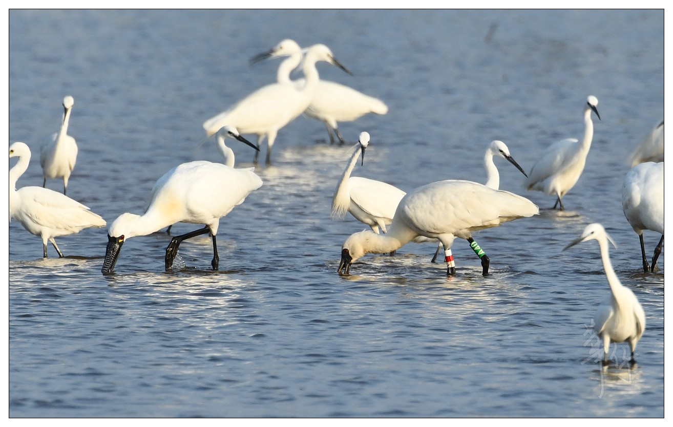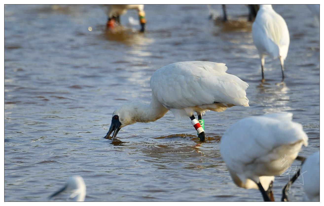 昨天, 三隻黑臉琵鷺戴上顏色腳環後, 在落馬洲濕地野放. 原因是這三隻琵鷺在二月中被發現病倒在這裡的魚塘中, 然後牠們被送往嘉道理農埸接受 治療及護理, 經過兩個星期的康復, 相信牠們已恢復, 可以放回野外.