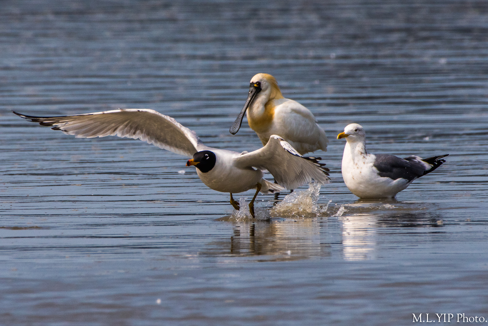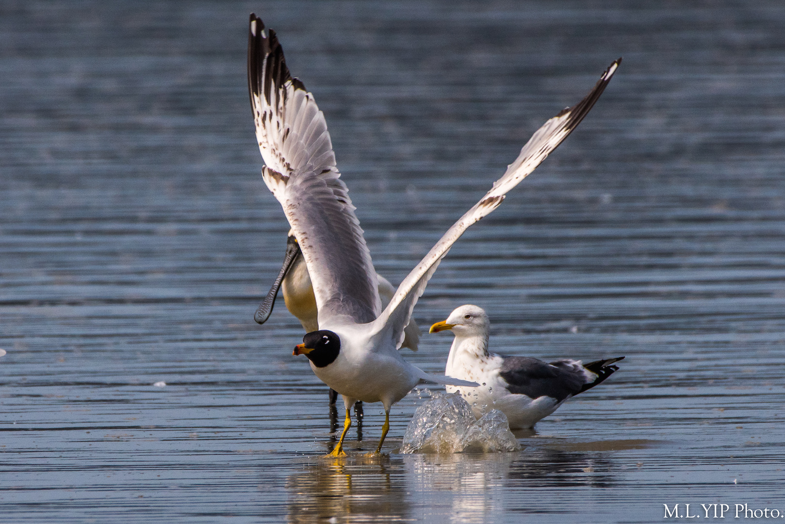 這隻體型龐大的漁鷗,體重也不輕,起飛時也是頗費力氣·