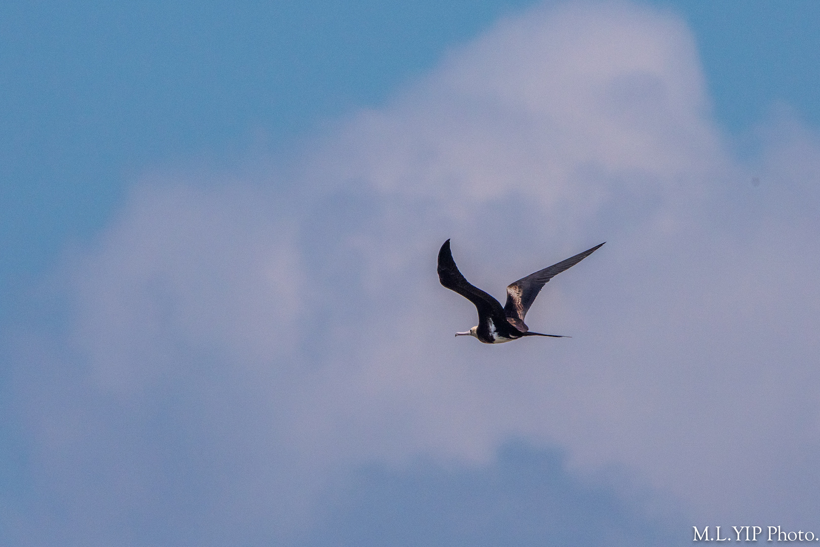 今天(五月十四日)上午,在米埔浮橋外南鸛鳥屋拍攝到,估計是一隻軍艦鳥,正朝北面飛,可惜飛得很高,沒法看得清楚.