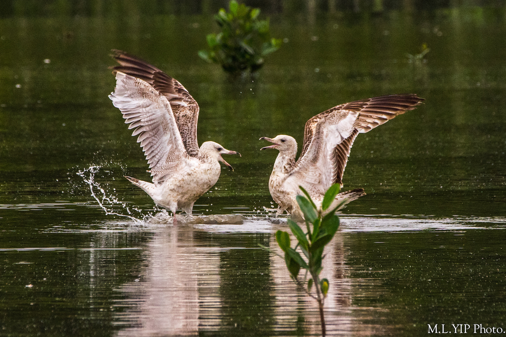 兩隻灰背鷗不知道因為甚麼的事情,似乎有頗激烈的爭辯.