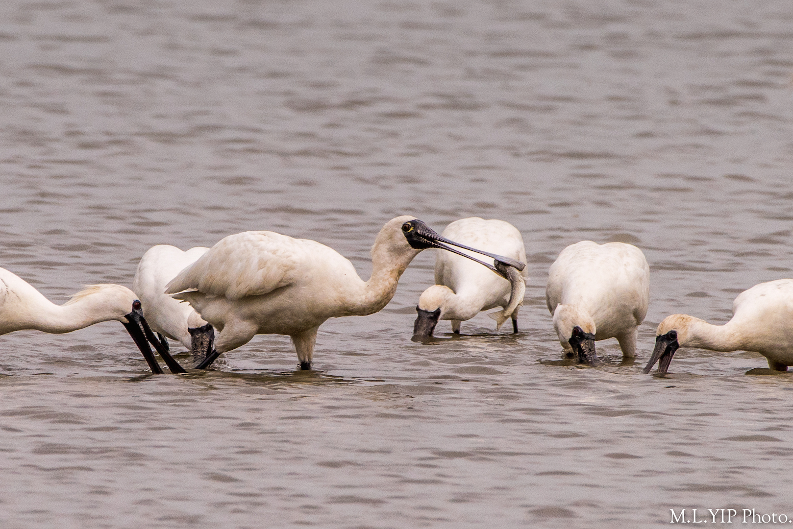 當大家仍低頭尋覓,這黑臉琵鷺已經率先有收穫了.
