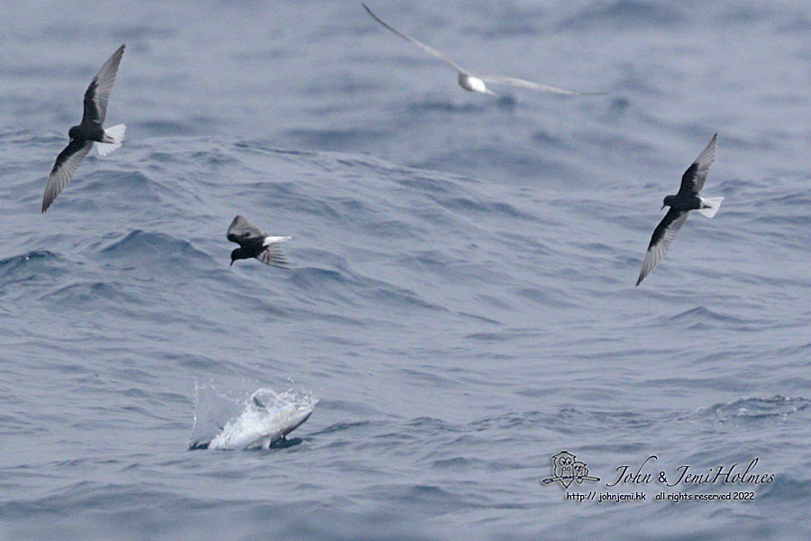 In the bottom two shots, a flock is feeding over an area where small fish have been driven to the surface by bigger fish...