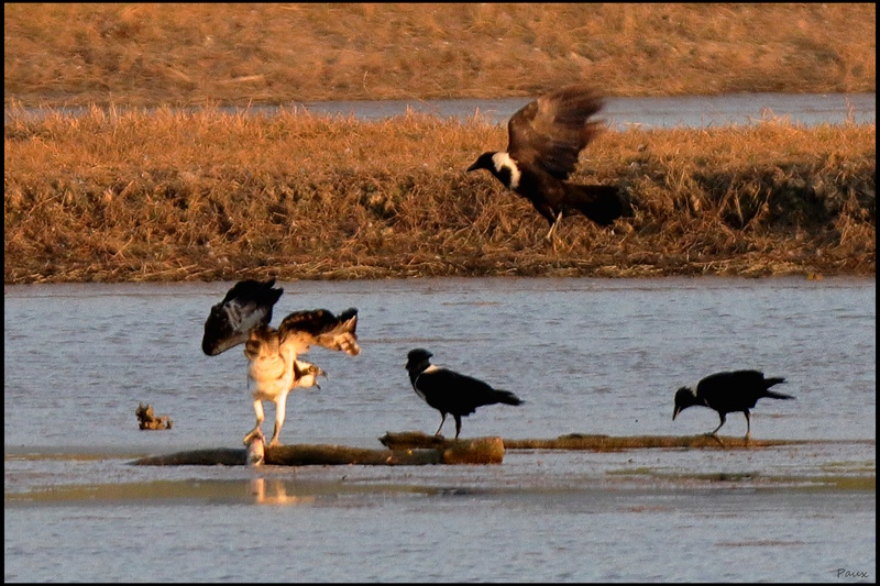 Osprey angered by a gang of Collared Crows.
