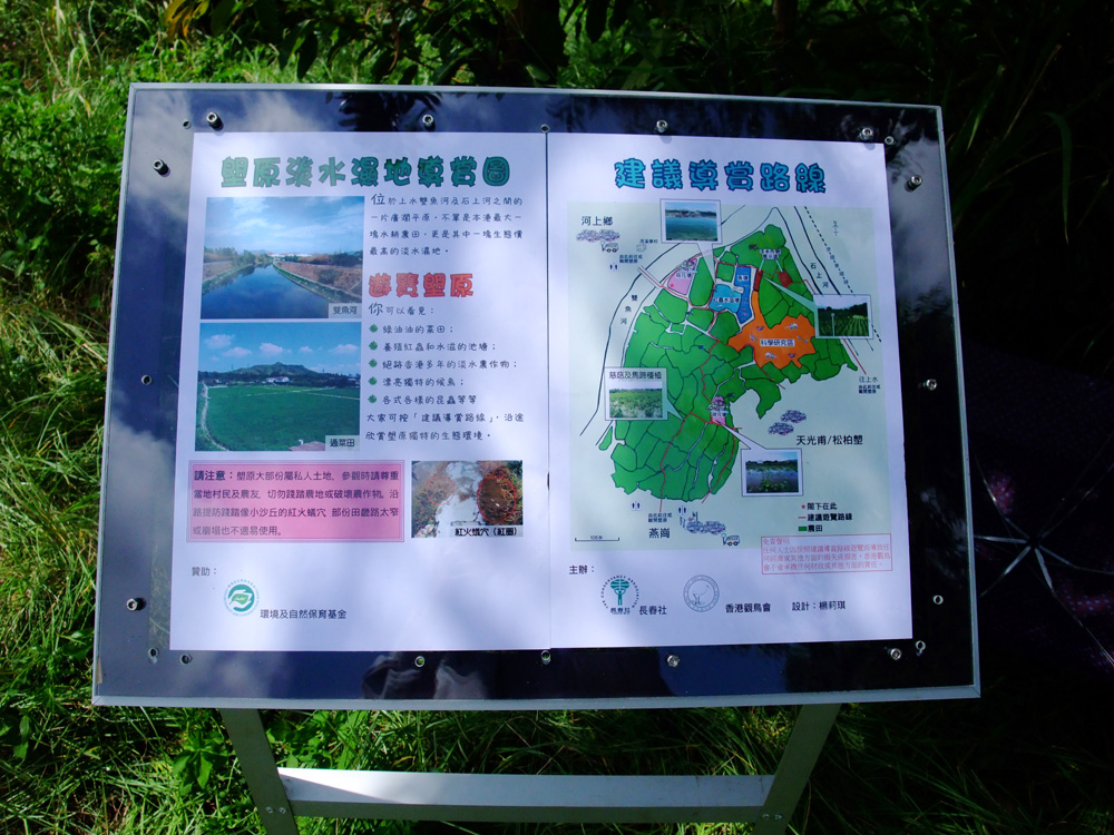 另外,我們近日在塱原近河上鄉入口設置了一個介紹牌,當中簡介了塱原的特色,並附有一條建議遊覽路線,遊客到塱原參觀時可以對這片濕地有更深認識。