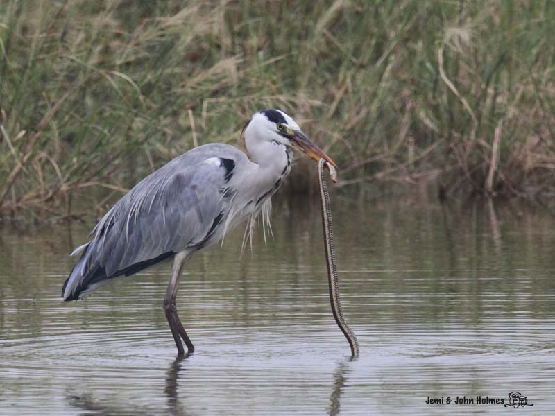 However, the Heron could not swallow the struggling snake at the first attempt and regurgitated it, which is when the photo was taken.  Later the Heron swallowed it a second time, and the snake did not re-appear !
