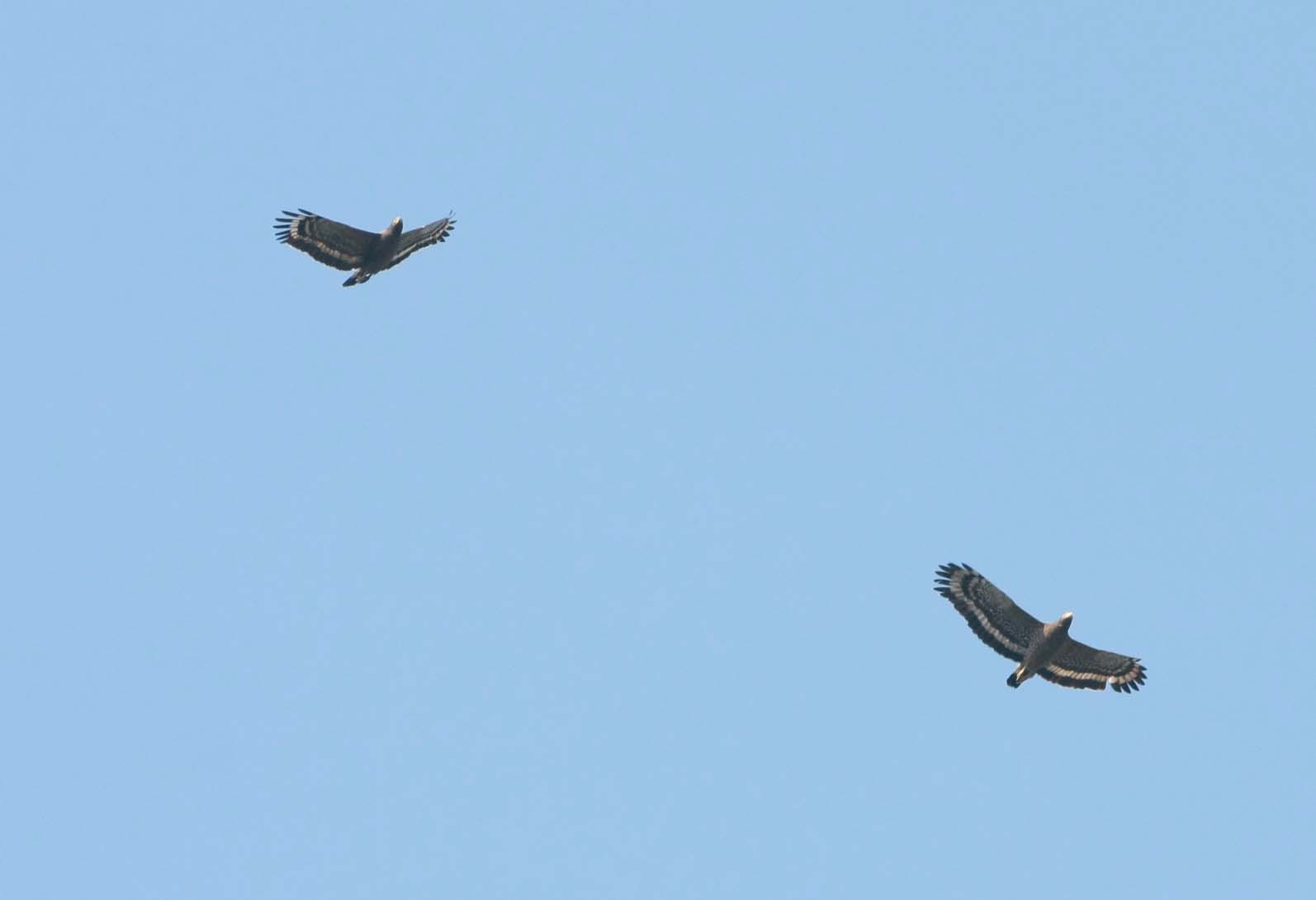 grey throated minivets, chestnut bulbuls and japanese whiteeyes along the access road with the voice of forktailed sunbirds in the background all the way. a crested goshawk flew across the valley over the dam, which were filled with nearly 20 noisy scarlet minivets, making the valley feels like a bazaar.