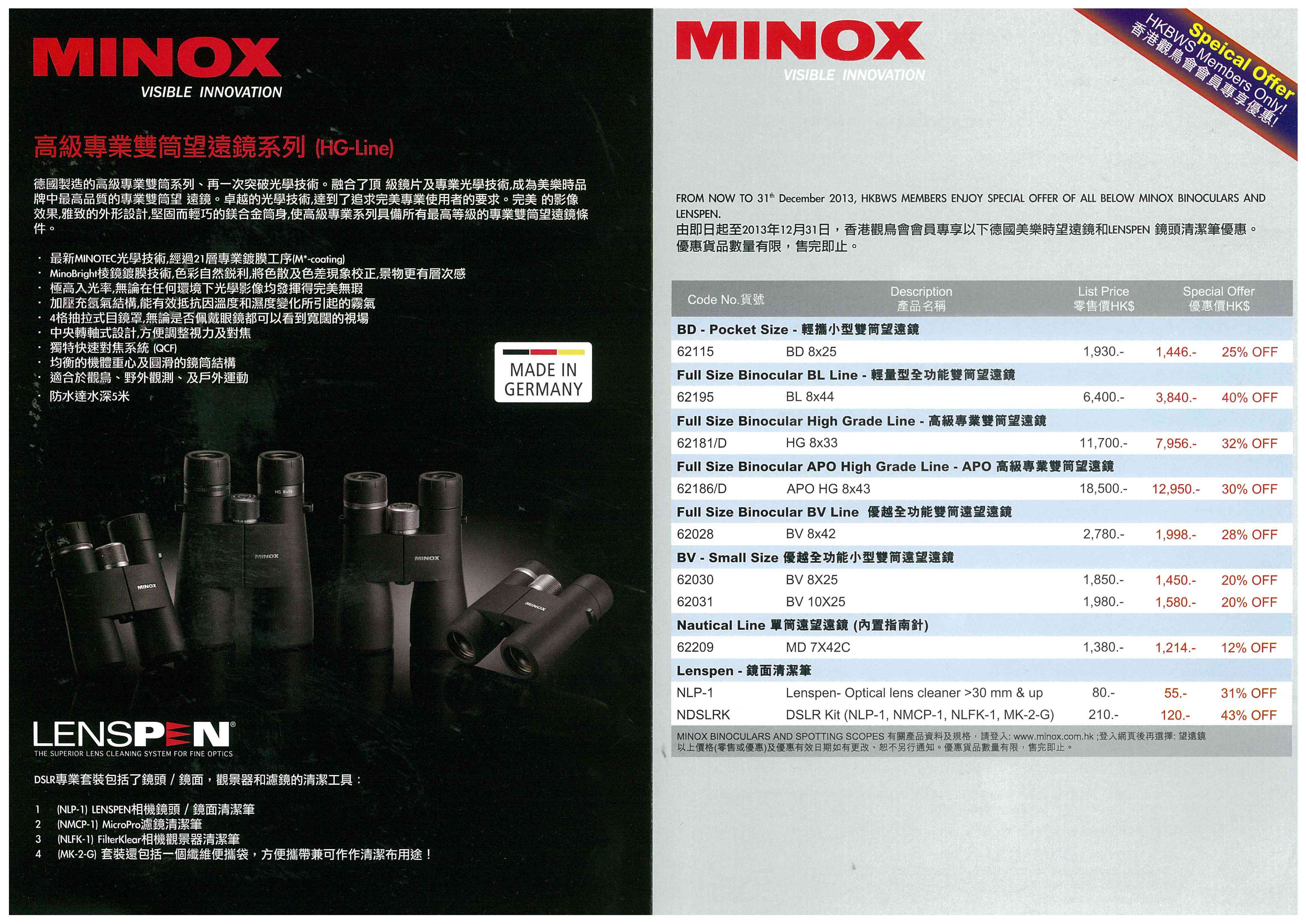 美樂時望遠鏡優惠Special Offer of Minox Binoculars 2013-09~2013-12