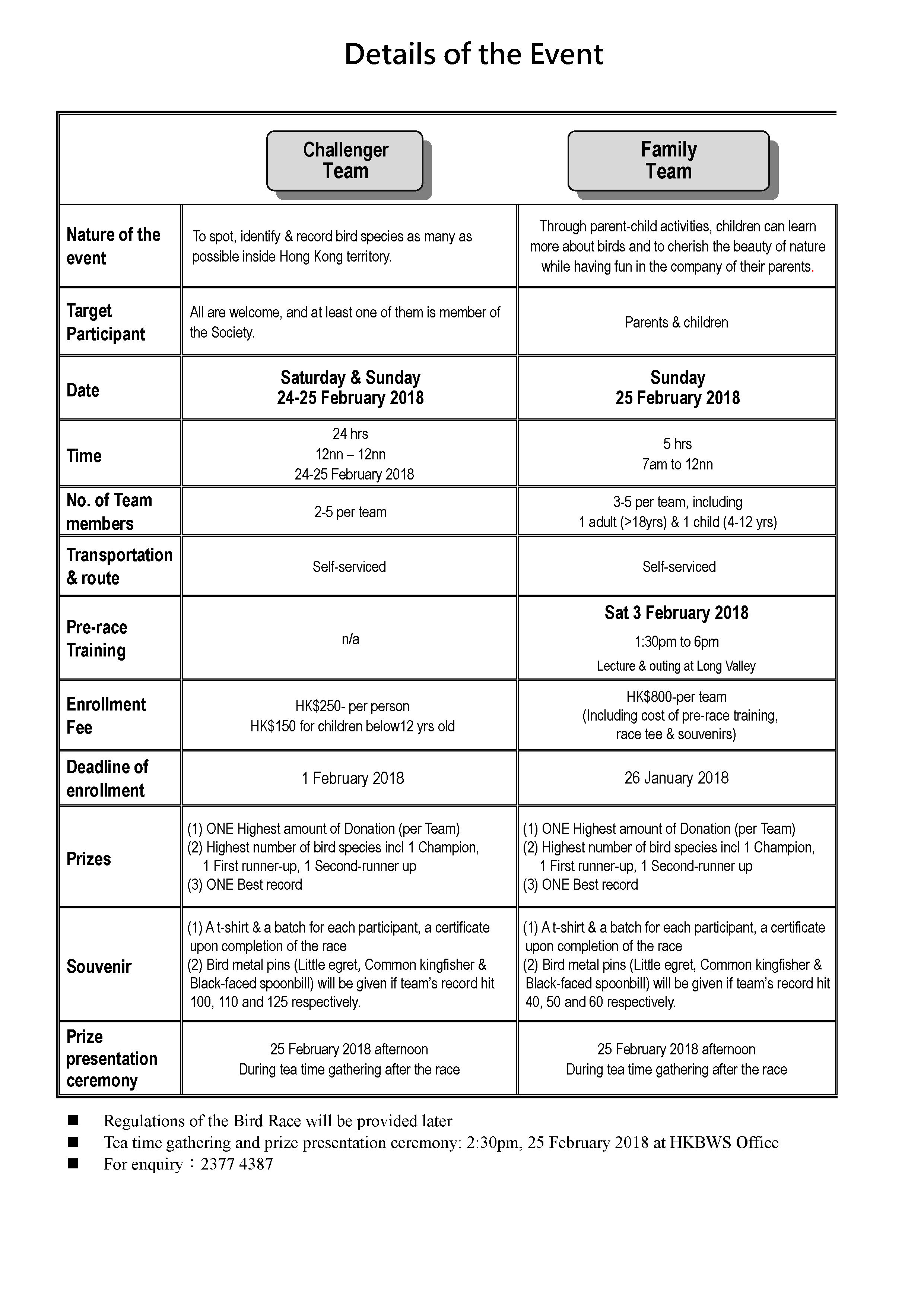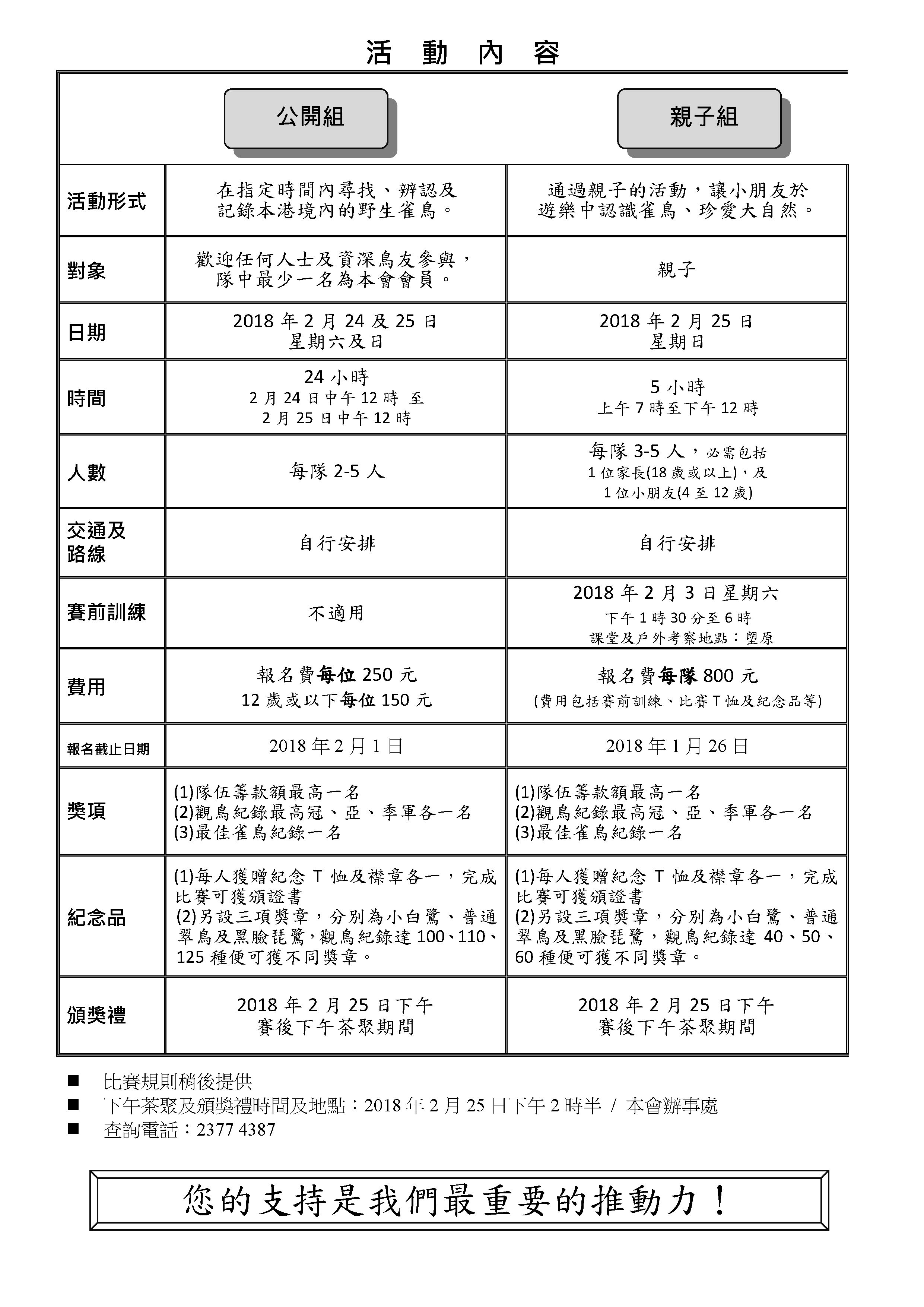 暨 觀鳥比賽籌款活動 2018 年 2月 24 至 25 日