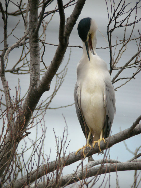 » A night heron picking feathers and preening