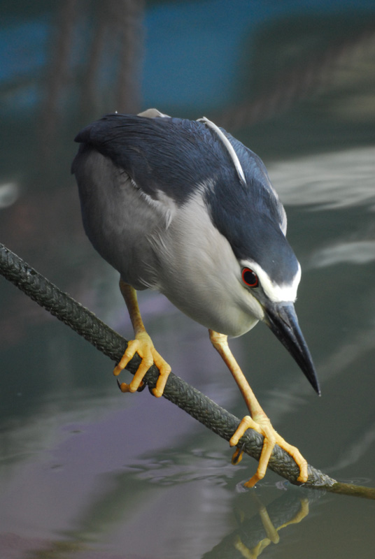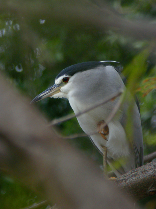 The following shots taken of the same night heron on two different days show how it came over from the cold weather: less sleeping and more curvature on the lining of the face.