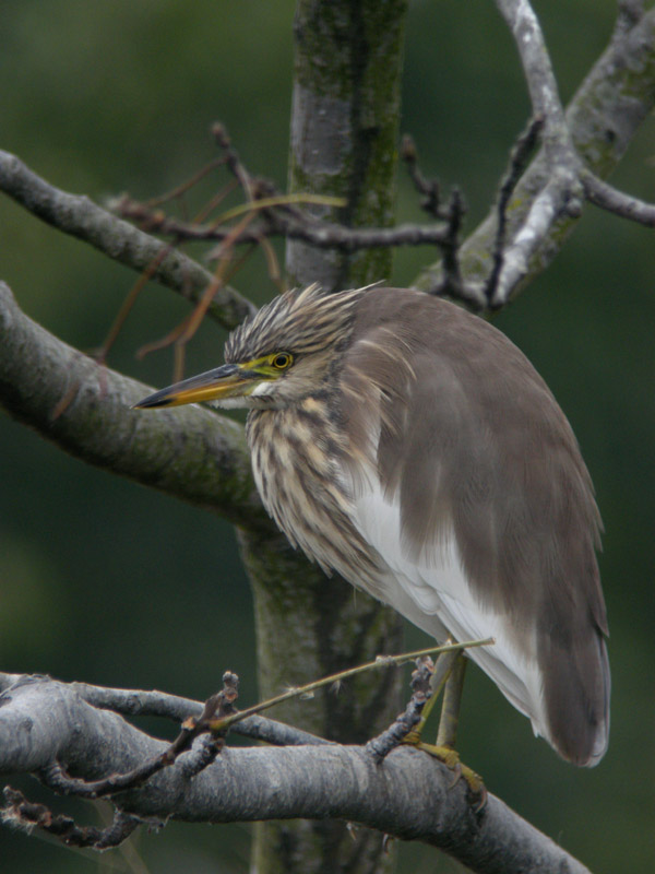 She seemed a bit cold from the way she shivered and puffed her plumage occasionally while perching on this branch. I was feeling equally cold, too, while watching her from a distance. Really, time for putting on more clothes.