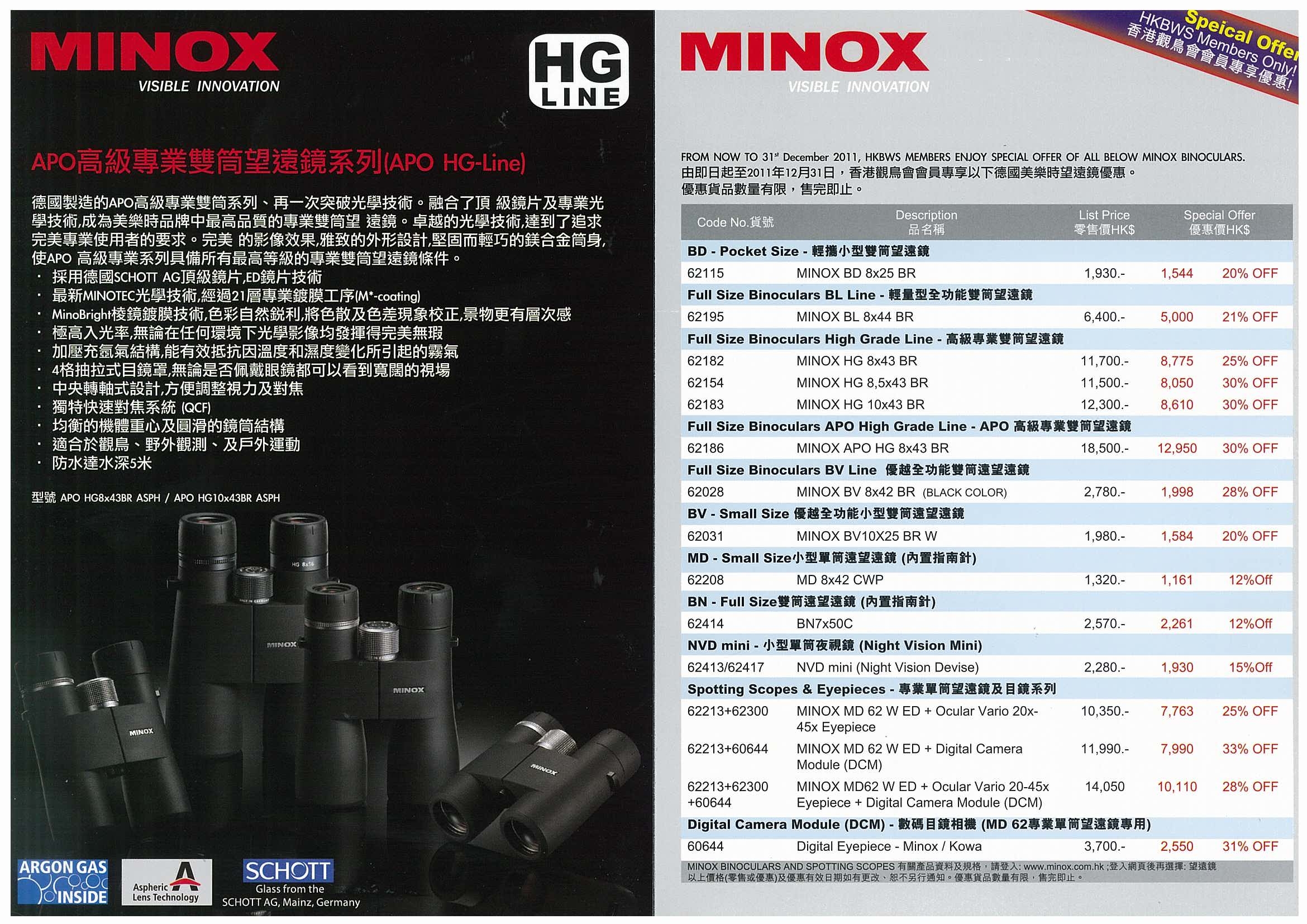 » 美樂時望遠鏡優惠 Special Offer of Minox Binoculars 2011/10~2011/12