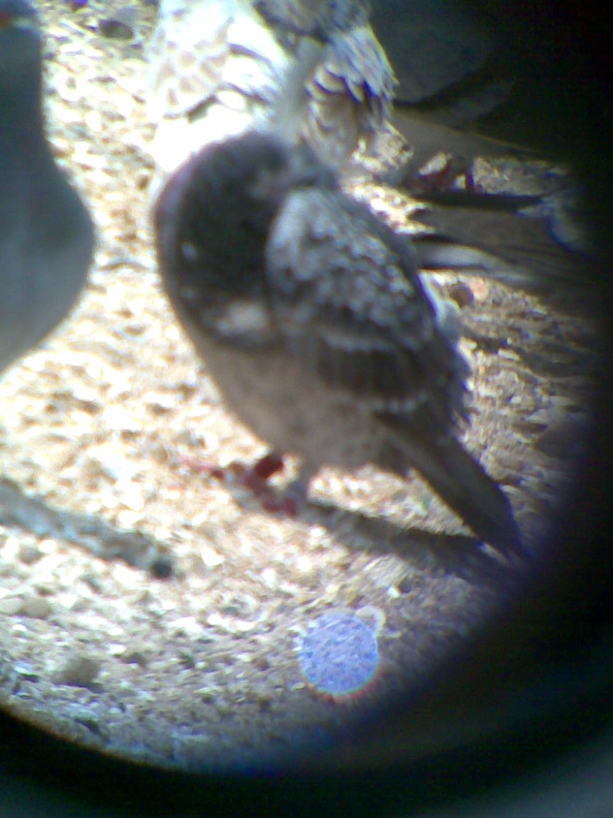 今天(24/3/2012)約上午10時在烏溪沙青年新村對出的沙灘,看見一群原鴿,其中一隻有腳環(左腳腳環:白色,號碼為"270834";右腳腳環:紅色,沒有號碼)。