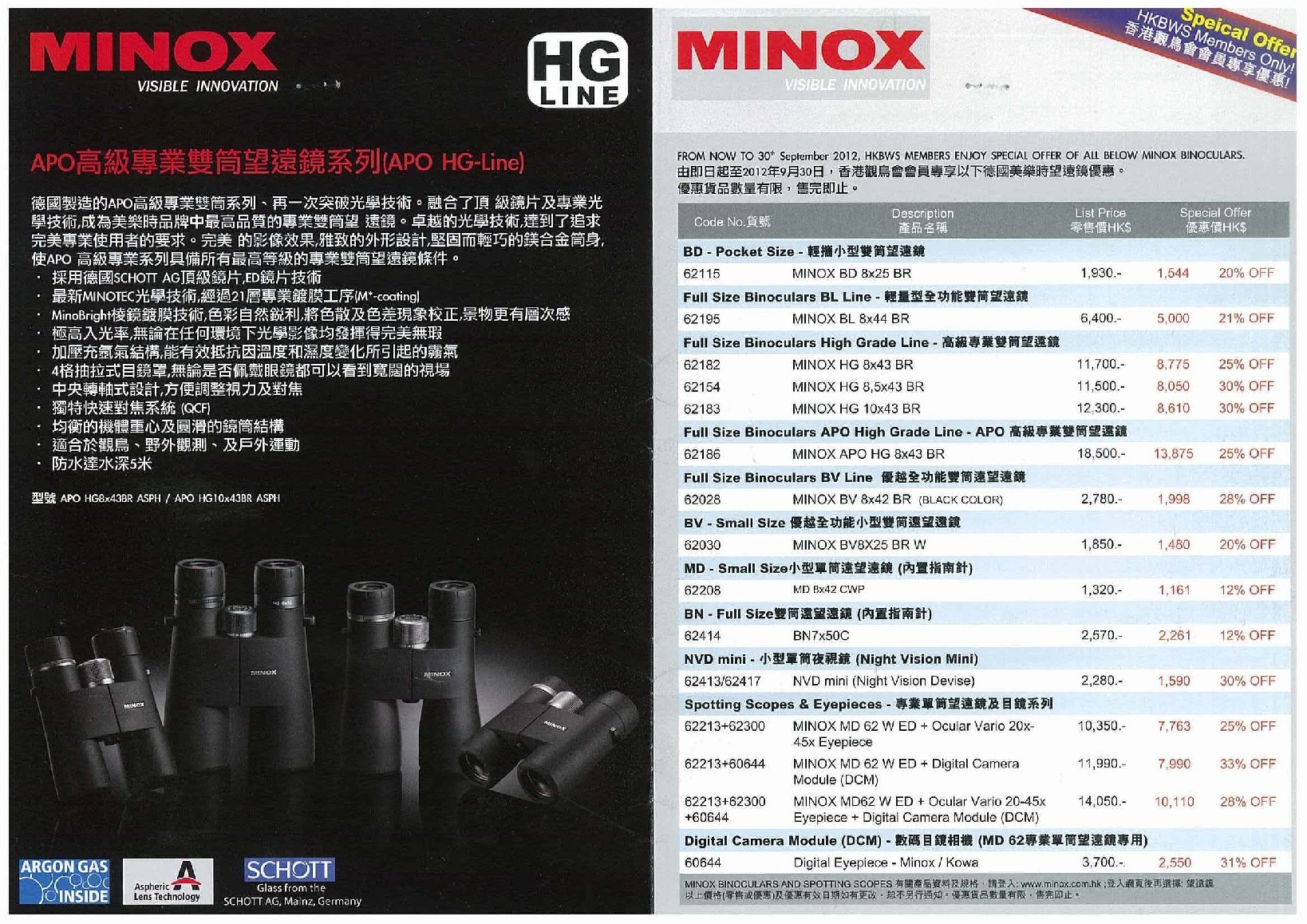 美樂時望遠鏡優惠 Special Offer of Minox Binoculars 2012-07 ~ 2012-09