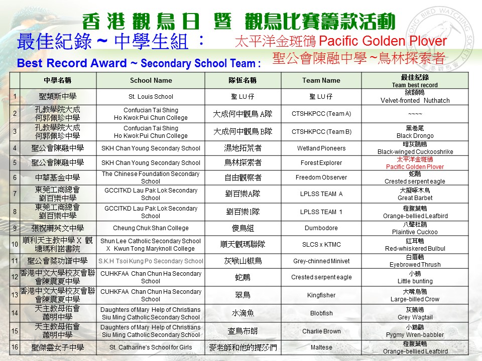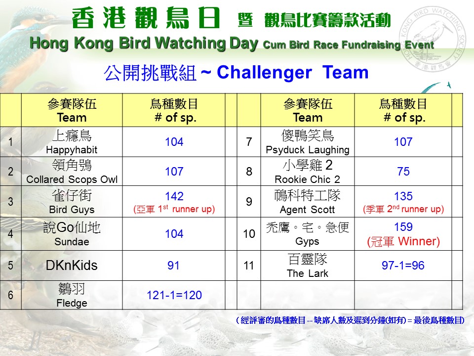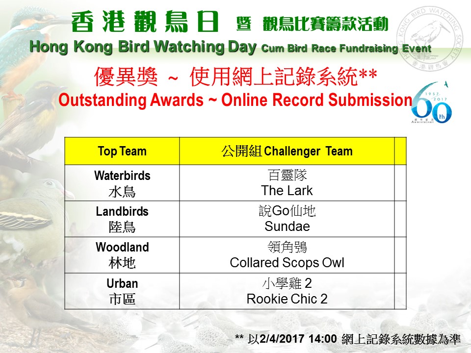 [Others 其他] 香港觀鳥日2017 - 比賽結果及花絮