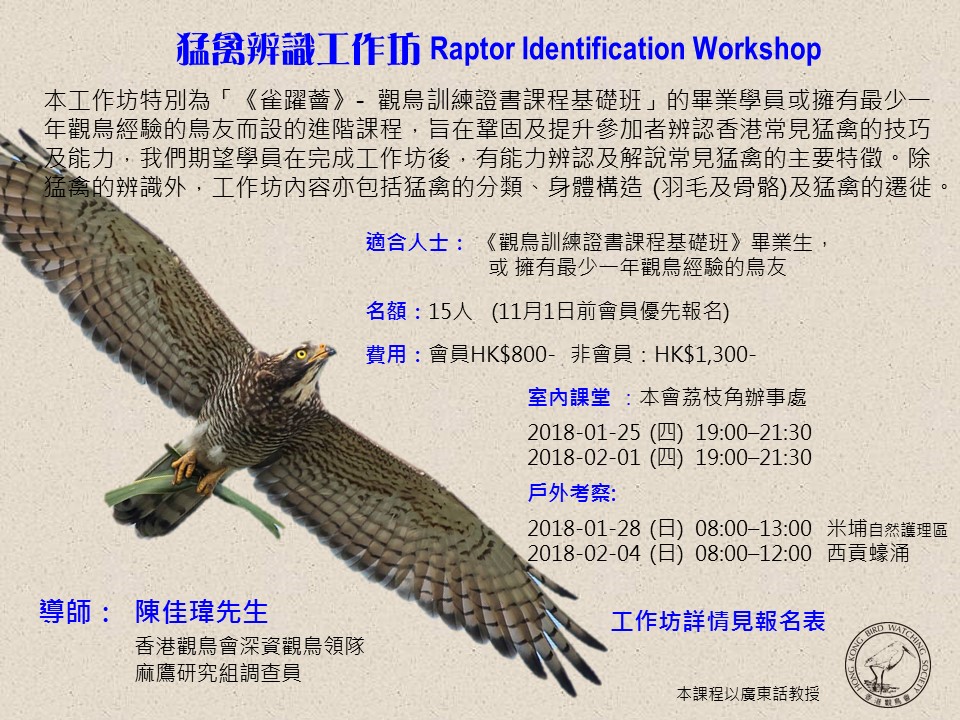 (滿額full)猛禽辨識工作坊 2018-01 Raptor Identification Workshop