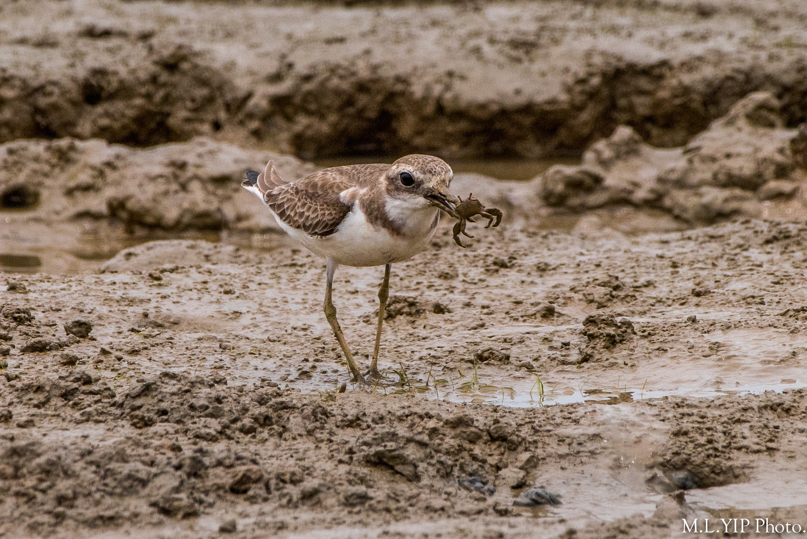 這隻鐵嘴沙鴴不停地在泥灘捕食,不知道是不是正準備好吃飽後就回程.